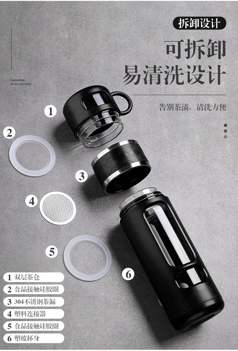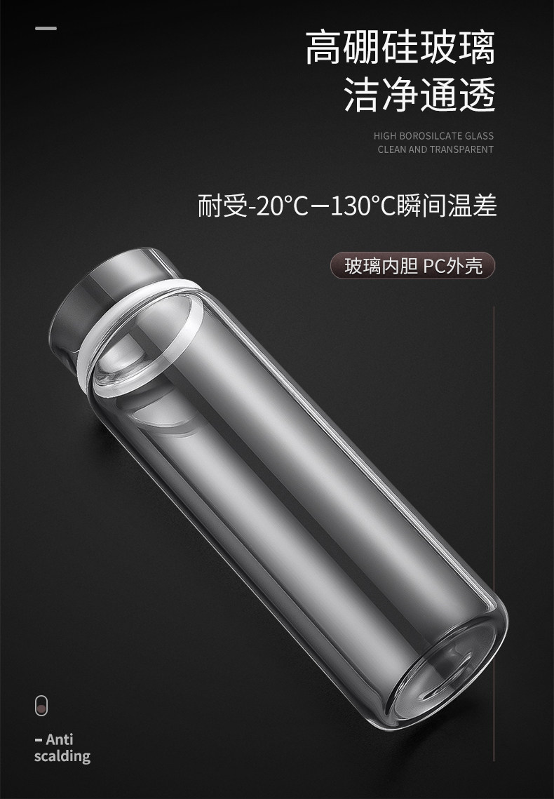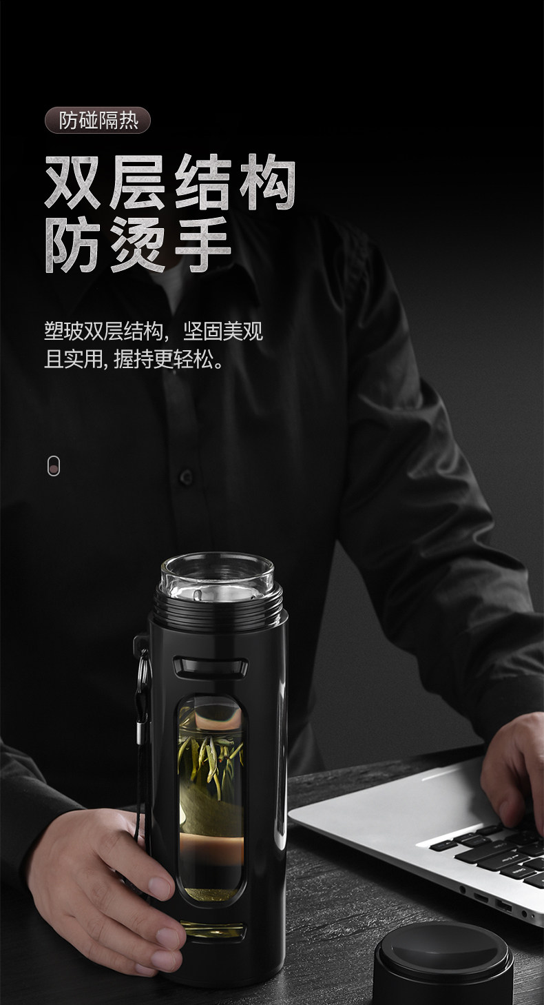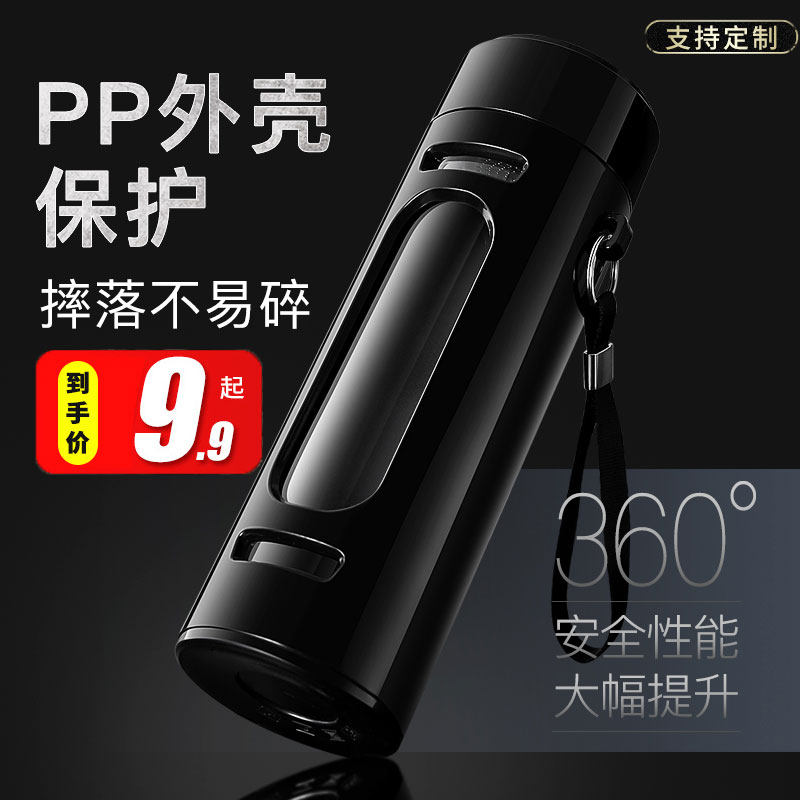 Стеклянный чай, мужская портативная прозрачная чайная чашка, защита от ожогов, защита при падении
