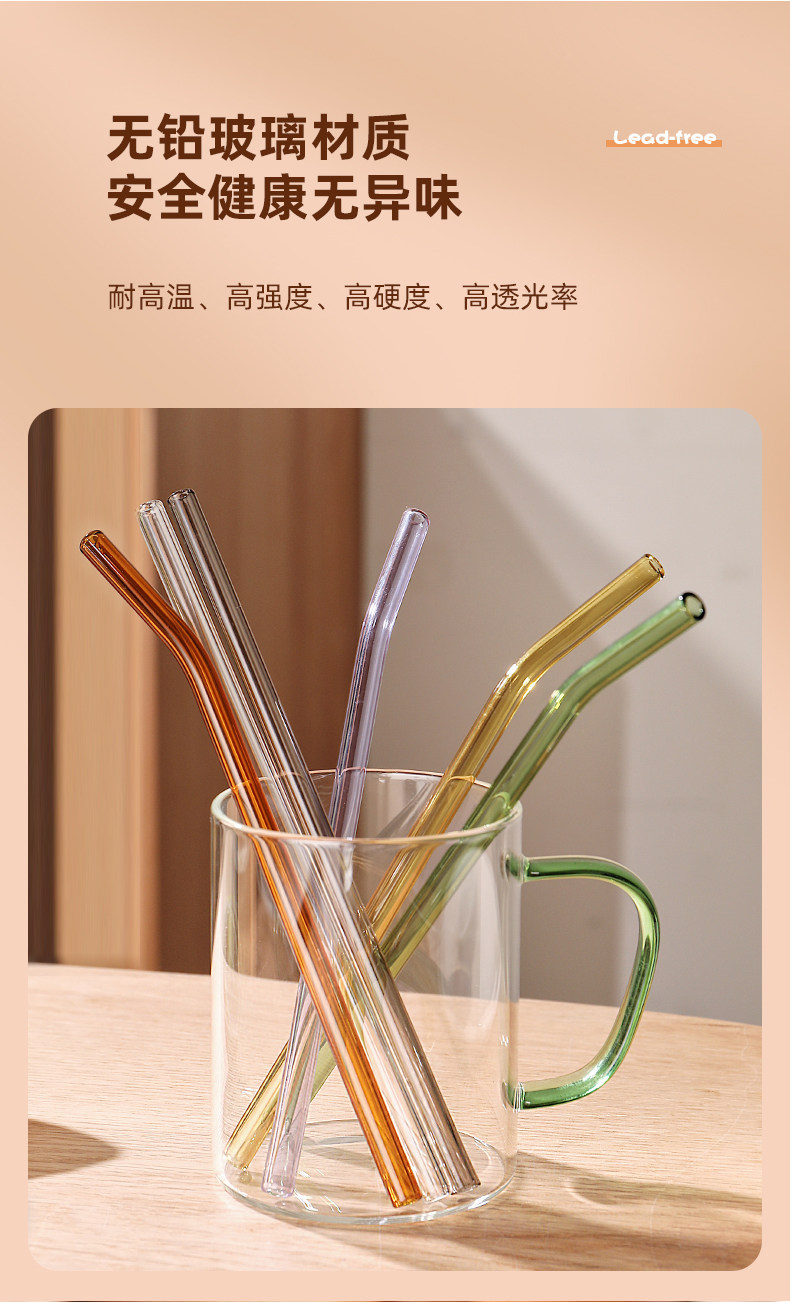 Genas Glass Strails 6 Сопротивление высокотемпературной устойчивости, тепла, питьевой воды, милый напиток кофейная соломин
