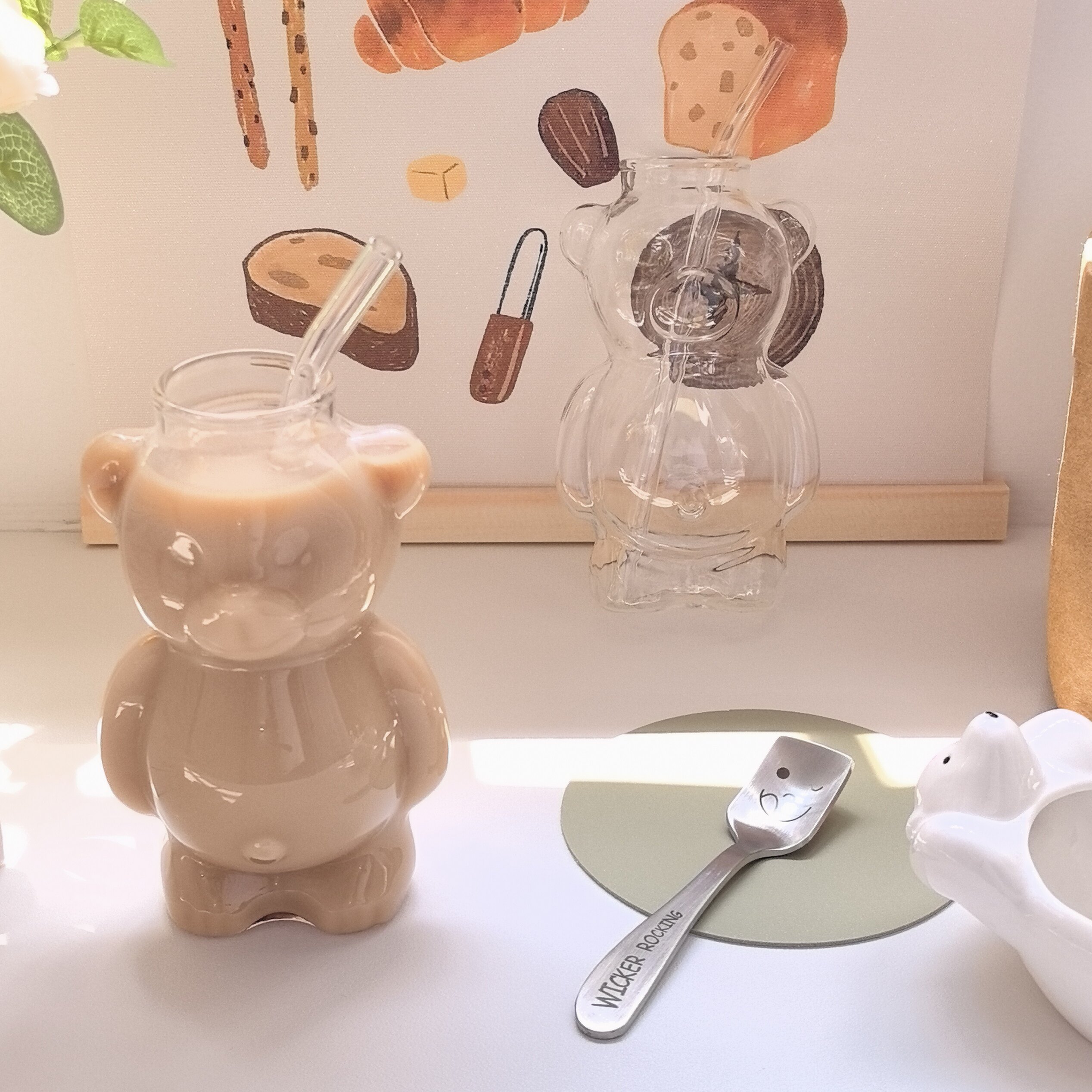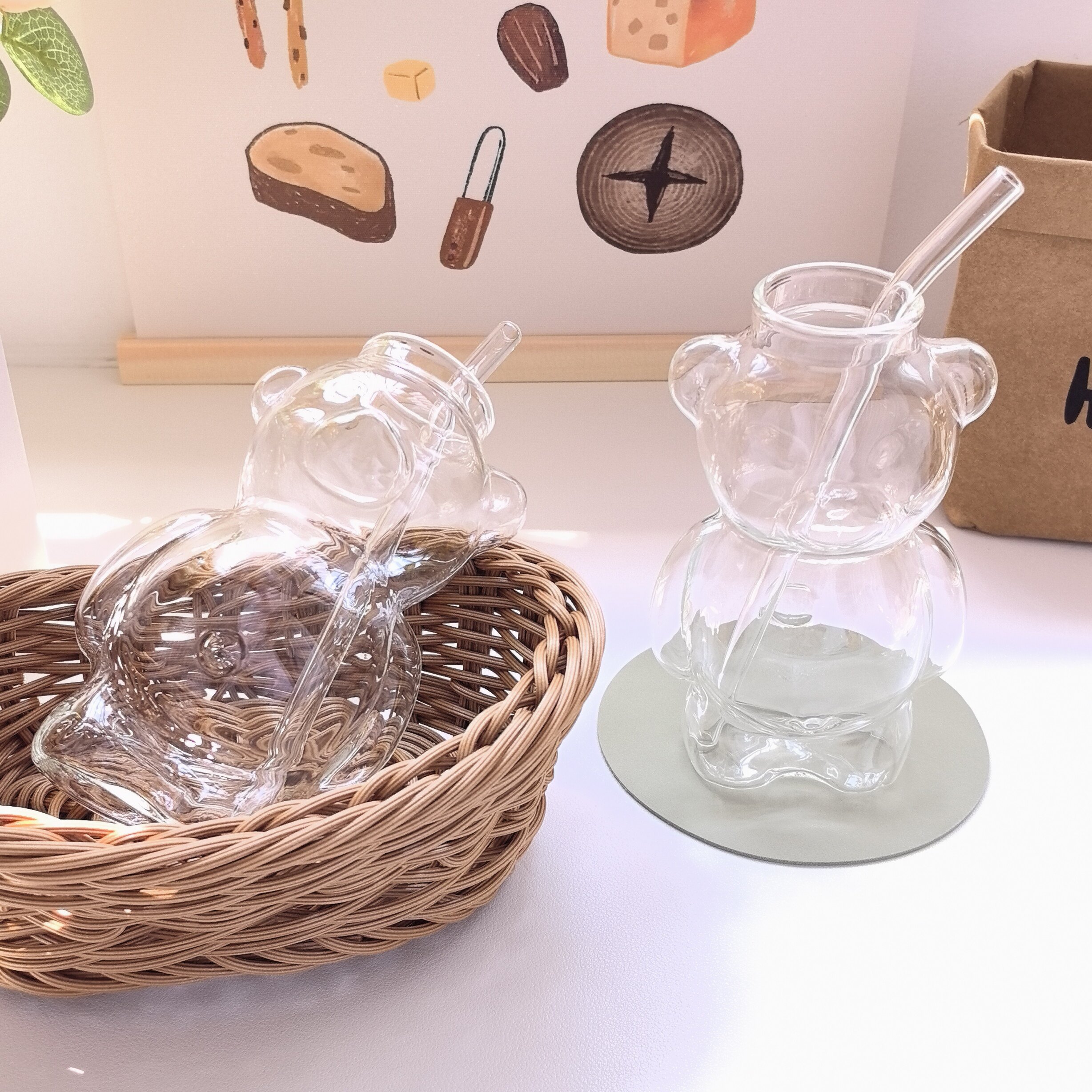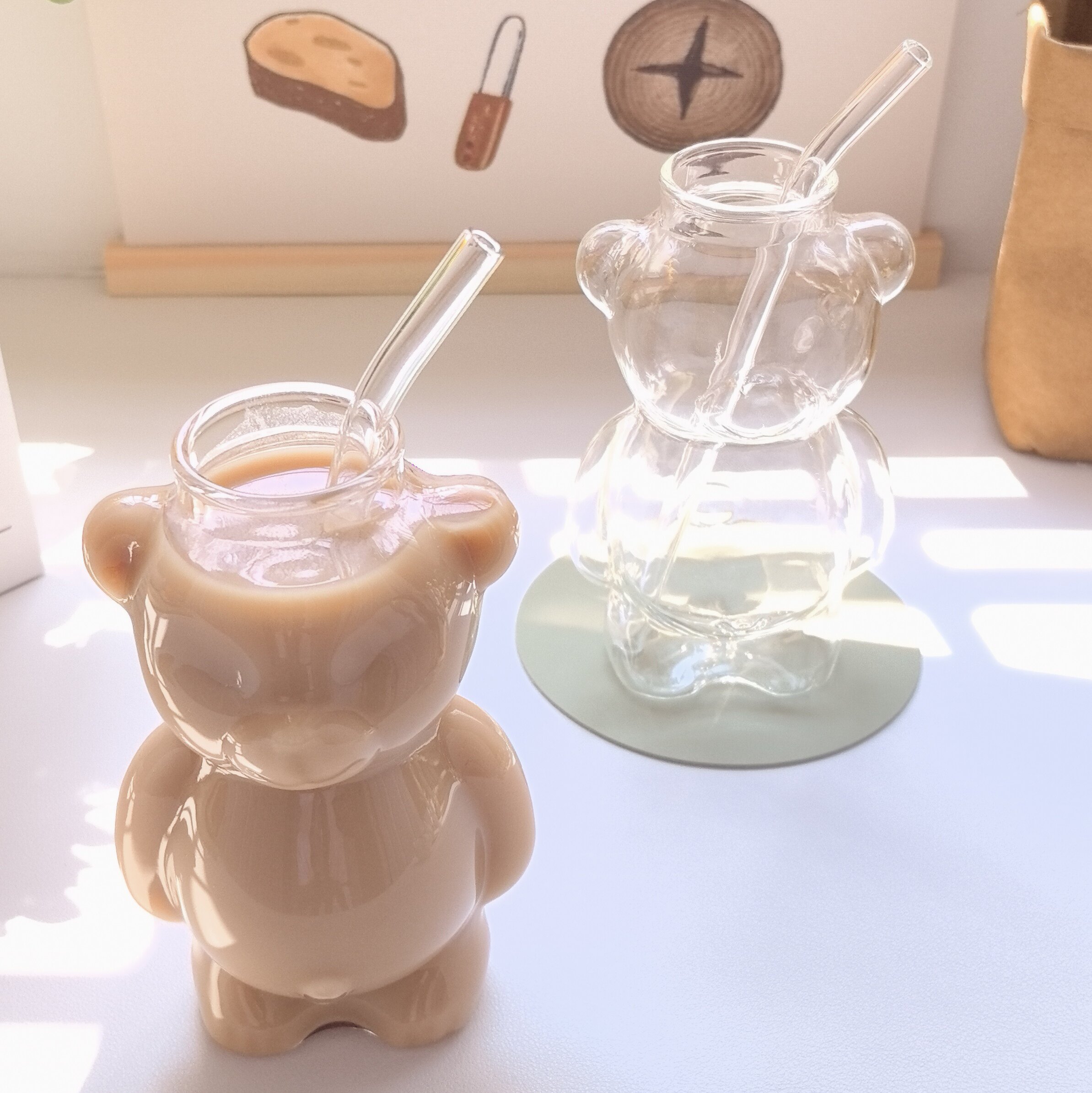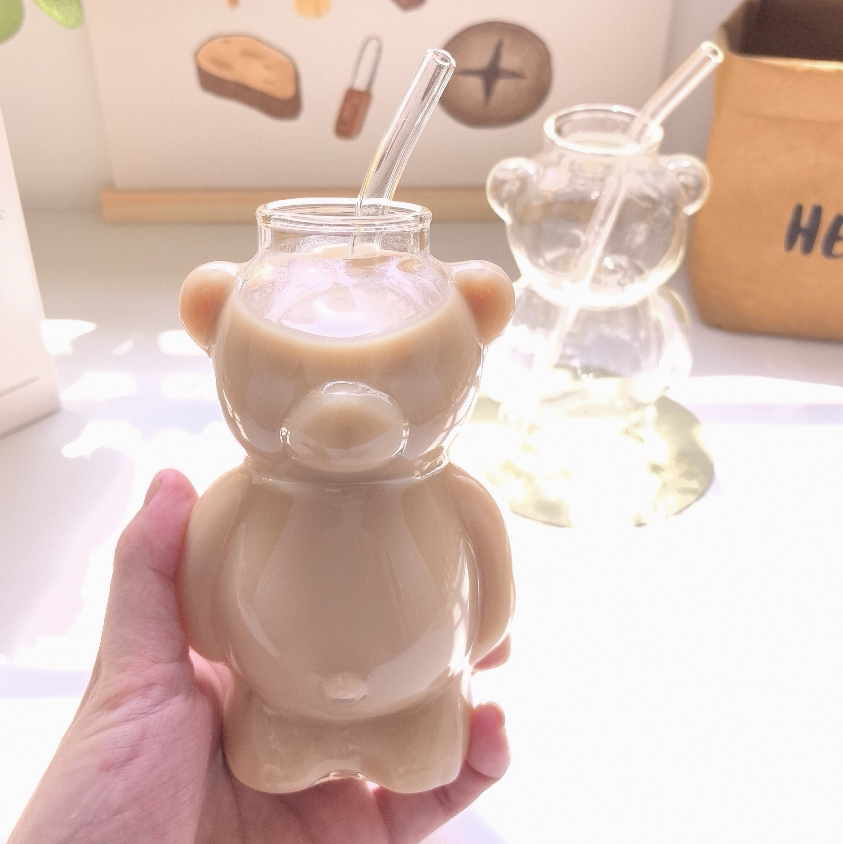 Стеклянный стакан, трубочка, высококачественная кофейная креативная чайная чашка со стаканом, с медвежатами, популярно в интернете
