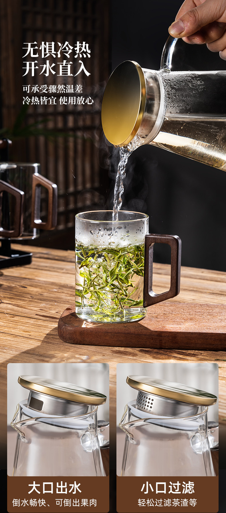 Стеклянная чайная чашка, высококлассный комплект для домашнего использования для гостиной для офиса, китайский стиль, легкий роскошный стиль