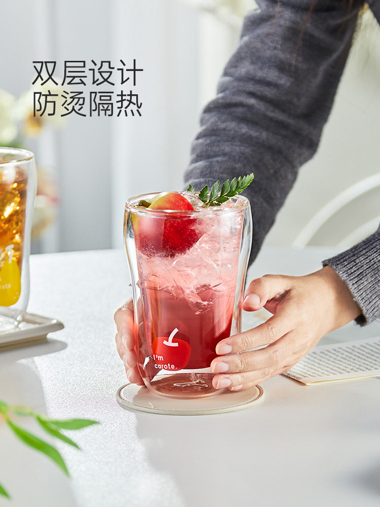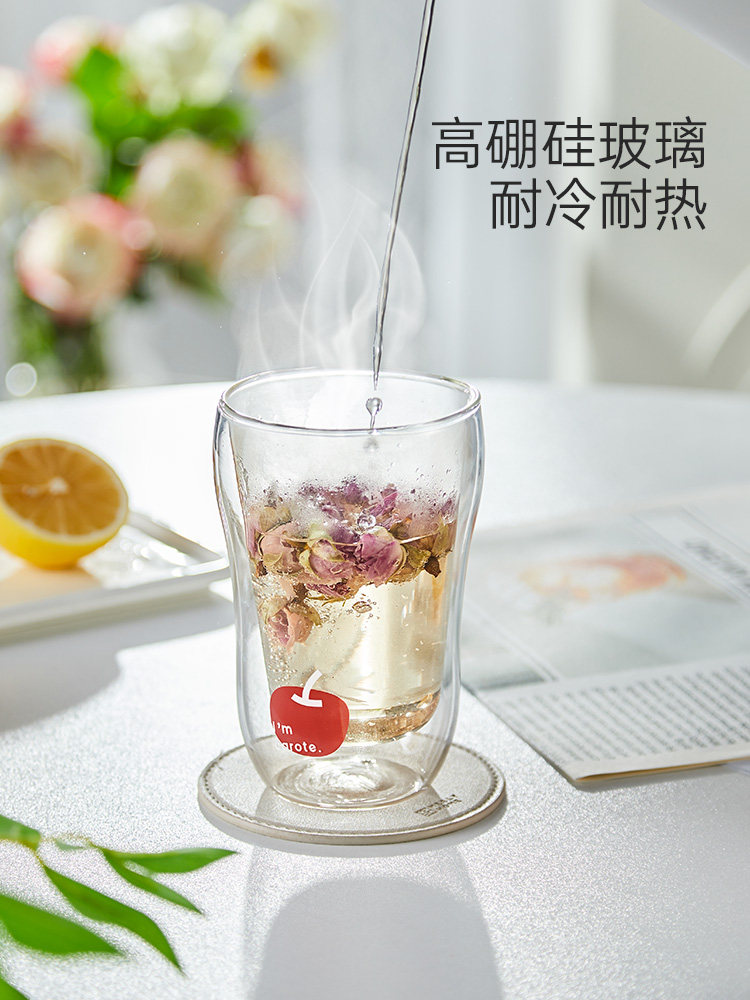 Стеклянная чашка для воды для девочек, двухслойная, высокоборосиликатная, термостойкая, устойчивая к ожогам, ценная бытовая питьевая кофейная чашка