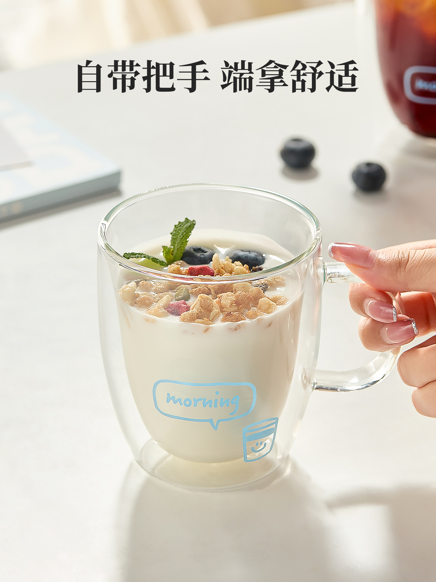 Двухслойная стеклянная чашка для молока с морковью, бытовая термостойкая утолщенная чашка для воды с защитой от ожогов, кофейная чашка с ручкой