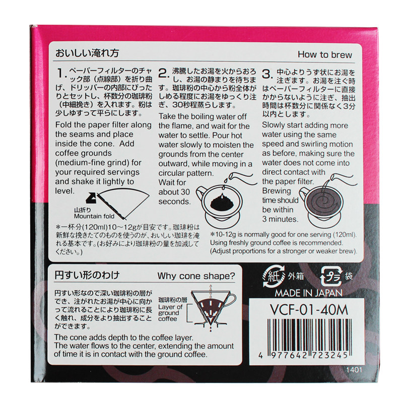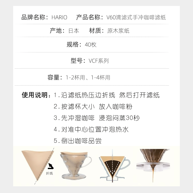 Кофейная фильтровая бумага Hario Hariov60 без отбеливаемого капельного капельного вентиляционного вентилятора.