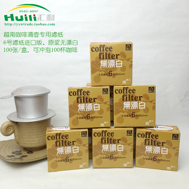 Вьетнамская капельная капельная капельница Вьетнамская горшка Специальная фильтровая бумага № 6 Нет отбеливатель 100 ставок/коробка 3 коробки из бесплатной доставки