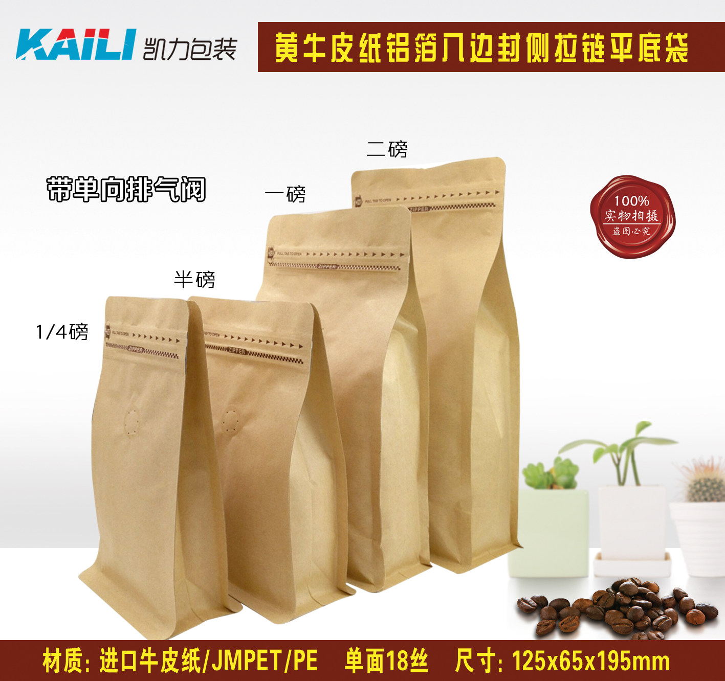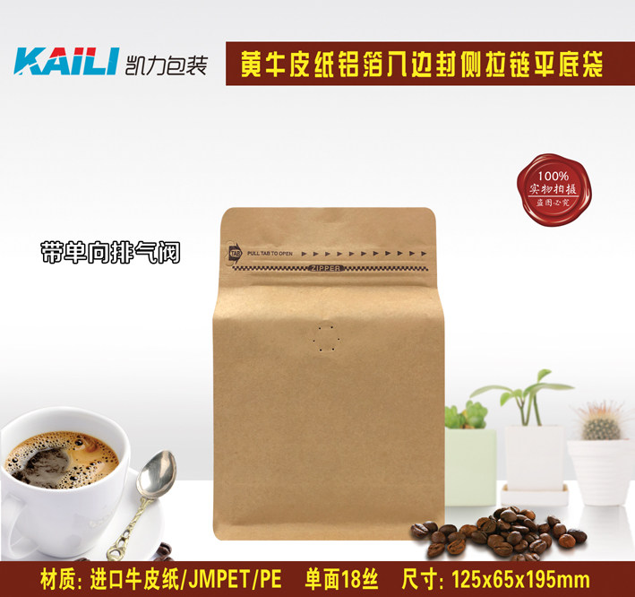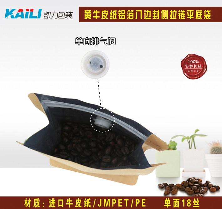 (10) Половина разрыхлительских пакетов для выпечки кофейного боба восемь запечатывание плоского пакета Кожаный бумажный пакет на молнии пакет газообразной