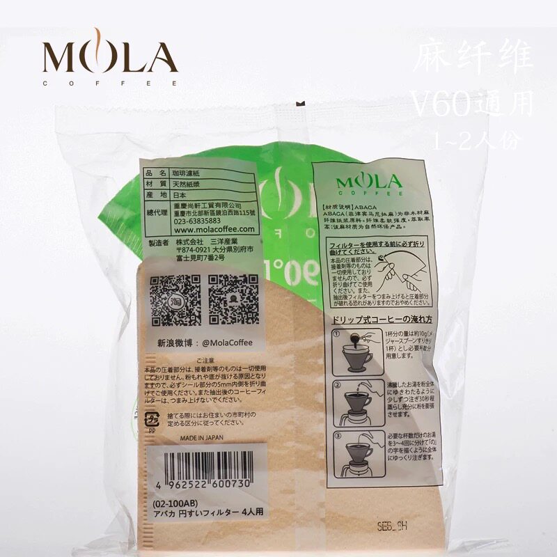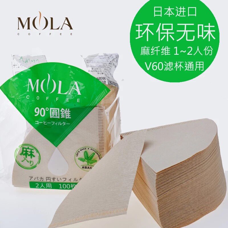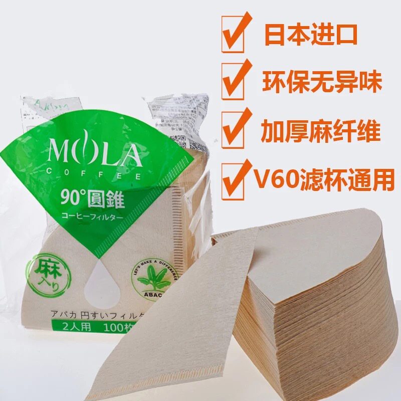 MOLA Японская оригинальная ручная фильтровая фильтровая фильтровая бумага фильтровая фильтровая бумага v60-01/02 Толстое конопляное волокно 100 таблетки