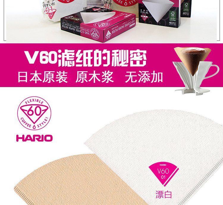 Оригинальная японская кофейная фильтровая бумага v60 капель утечки кофейная фильтровая бумага 01/02 Отбеливатель журнала