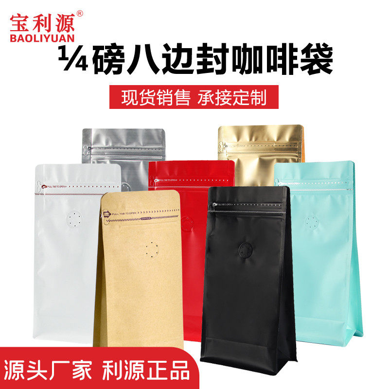 Бесплатная доставка 100 г кофейного пакета кожи для кожи бумажный пакет с восемью однонаправленными однонаправленными воздушными клапанами пакет алюминиевая фольга Сумка кофейная зерна упаковочная сумка Пятно место