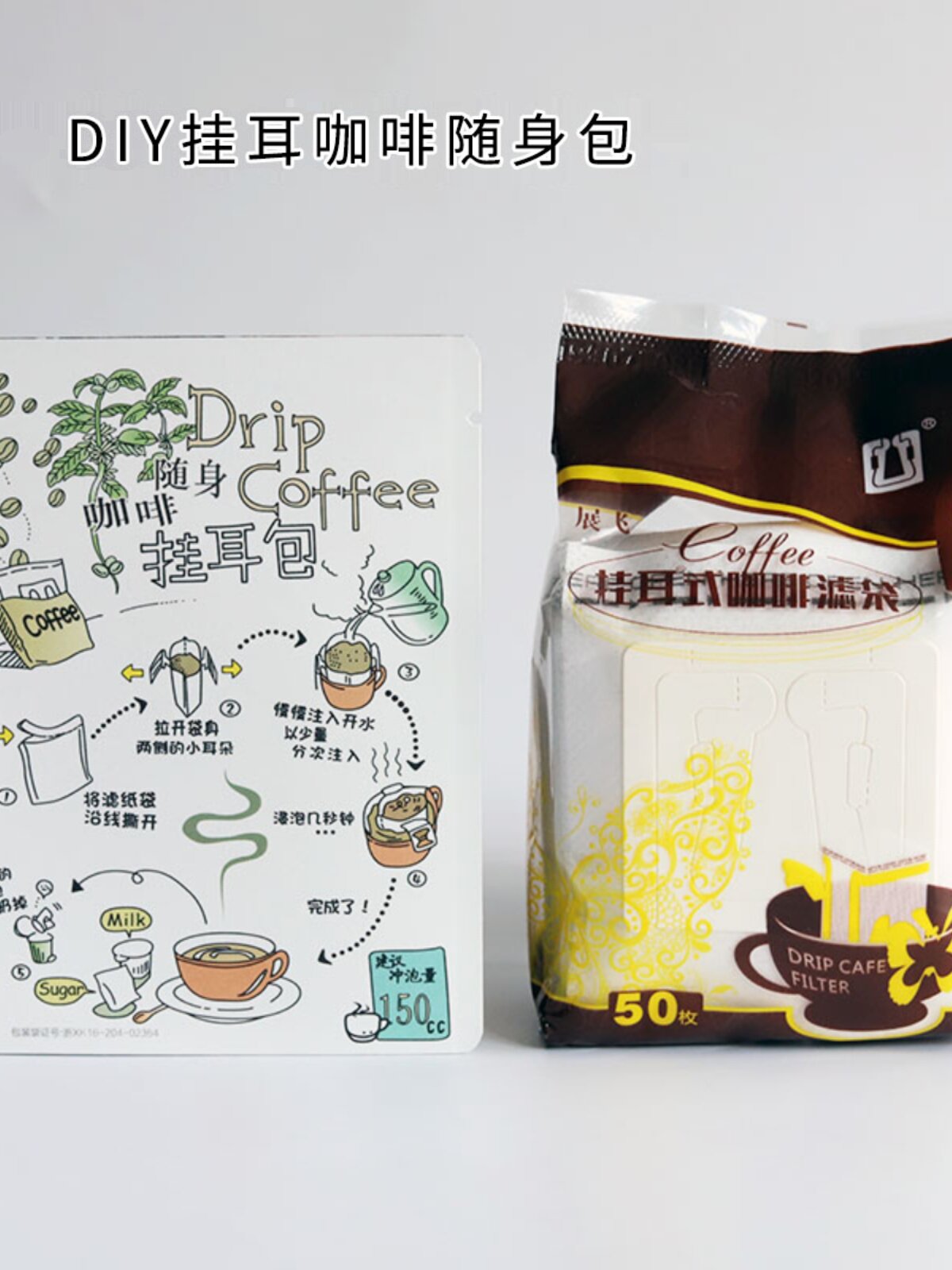 Подвесная уховая кофе подвесной пакет для ушей фильтровая бумажная бумага кожаная бумажная пакет с алюминиевой фольгой Сумка 50 комплектов домашних пакетов для кофейного кофейного уша
