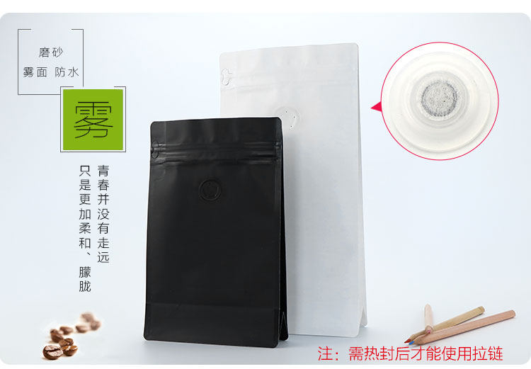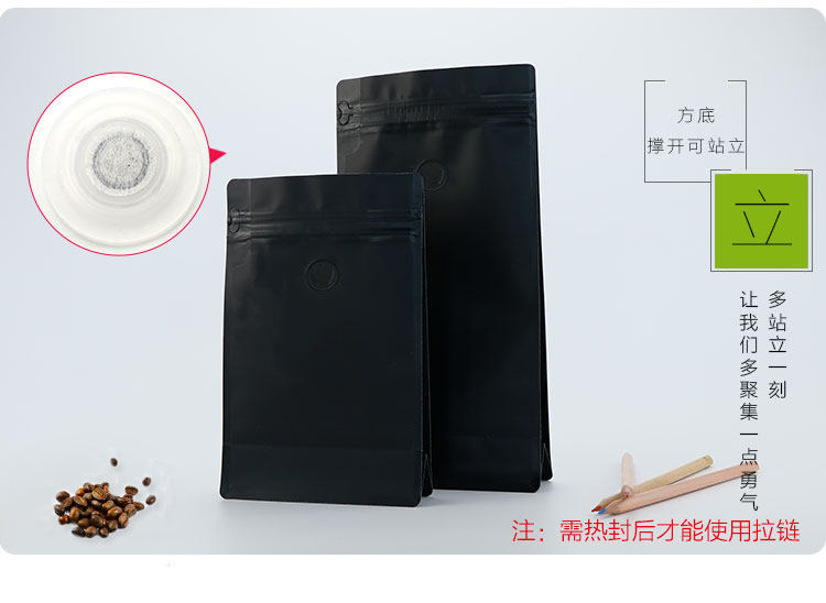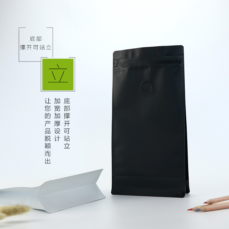 Упаковочная сумка кофейных бобов однонаправленное выхлоп и дышащий клапанный кофейный порошок квадратный дно нижний восьмерный пакетный пакет 250G500G1 фунт