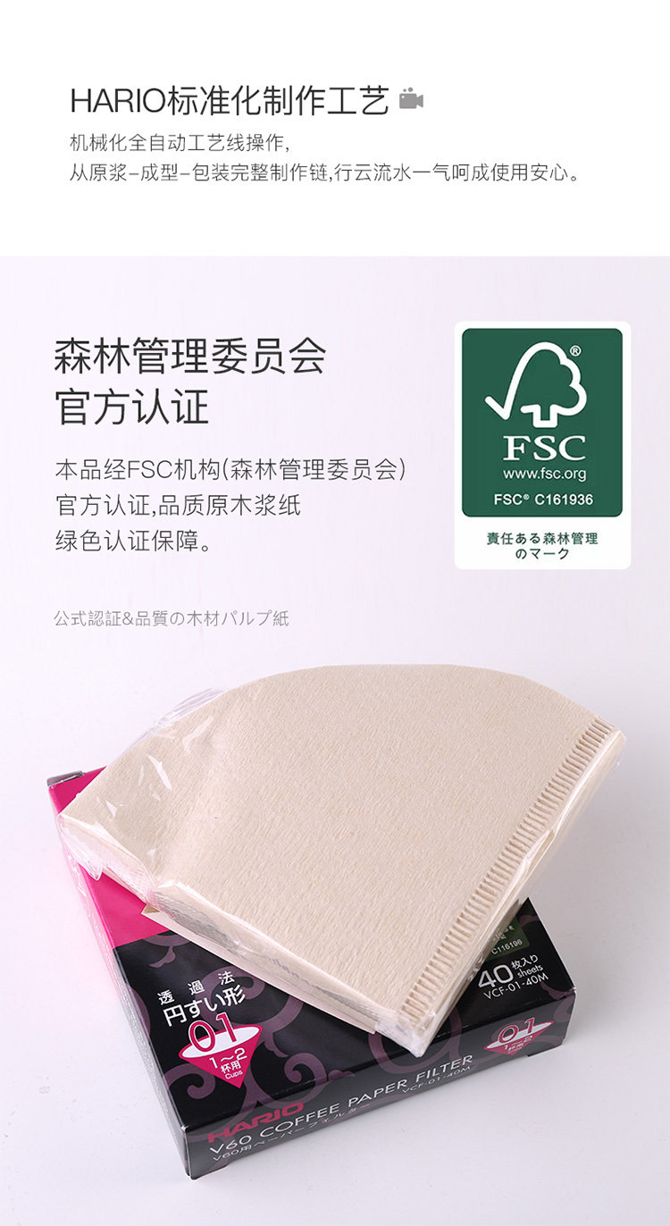Японская фильтровая бумага v60 Bleached Log v01/02 капли протекающей ручной конической фильтровальной бумаги Гаррио