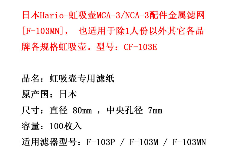 Оригинальная японская специальная фильтровая бумага Hario Siphon Pot 100 кусочков фильтра F-103MN Металлический фильтр