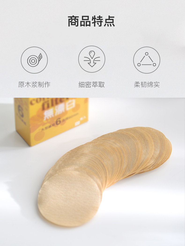 Кофейная фильтровая бумага Mortca Pot Filter Paper № 6 Круглая древесная волокно волокно -таблетки -тип капля для воды.