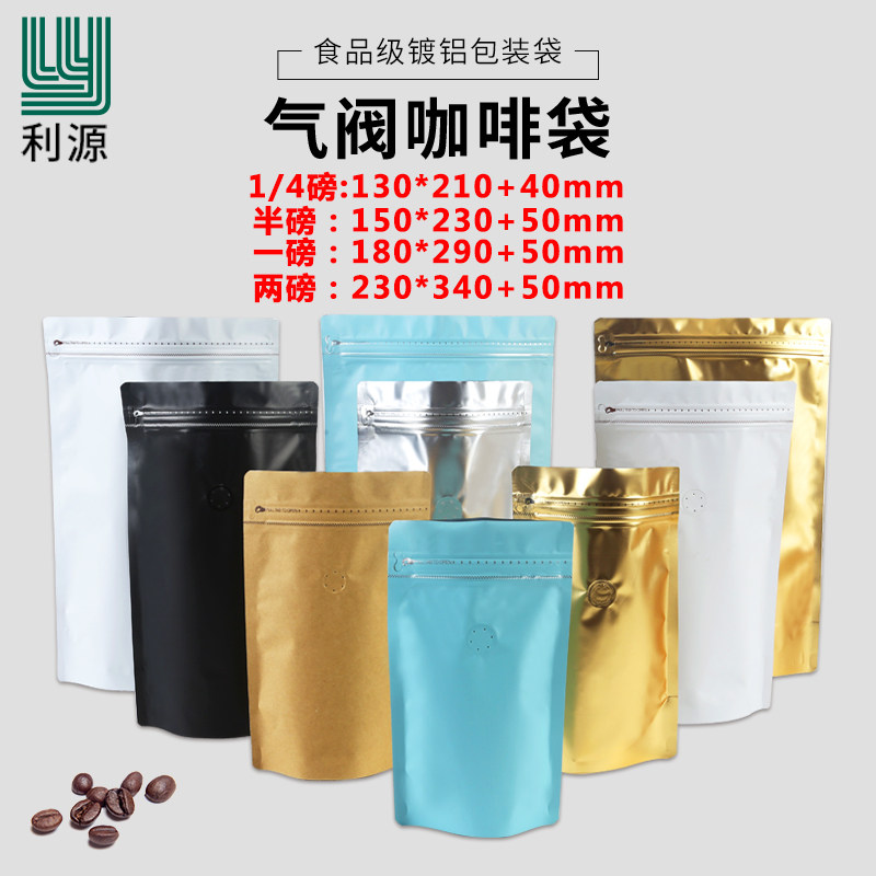 Liyuan Coffee Bag Bag Газовый клапан матовая алюминиевая фольга самостоятельная сумка для упаковки кофейная фасоль 250G500G1KG Бесплатная доставка