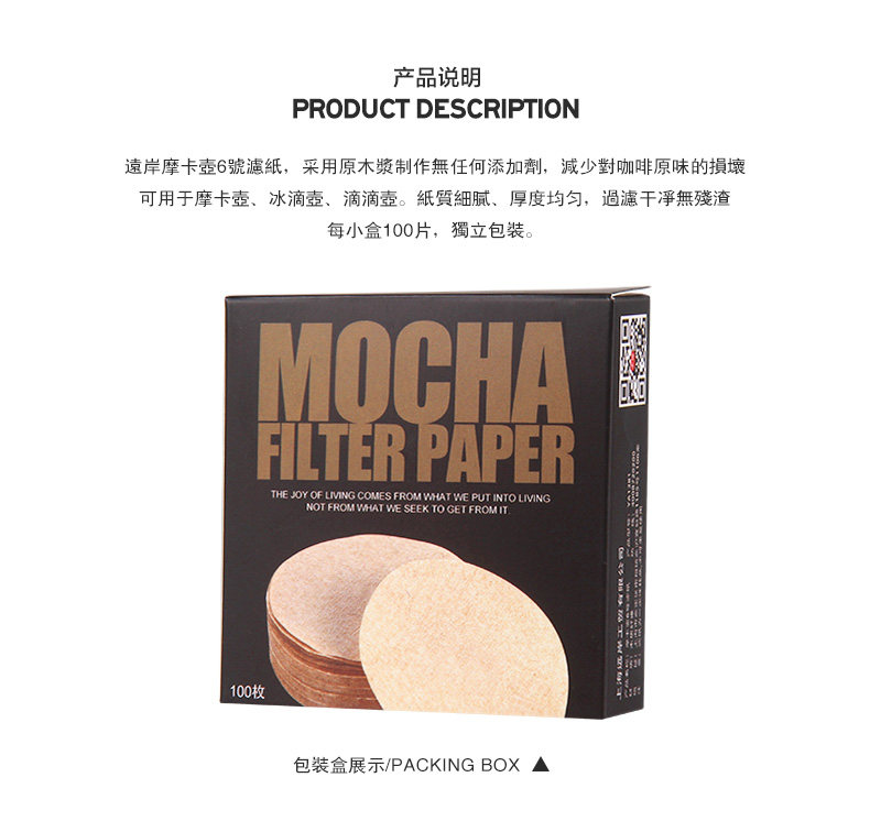 Мокко -фильтровая бумага Домохозяйственные одноразовые одноразовые одноразовые бревна без отбеливания утолщенные 100 таблеток капля кофейная фильтровая бумага