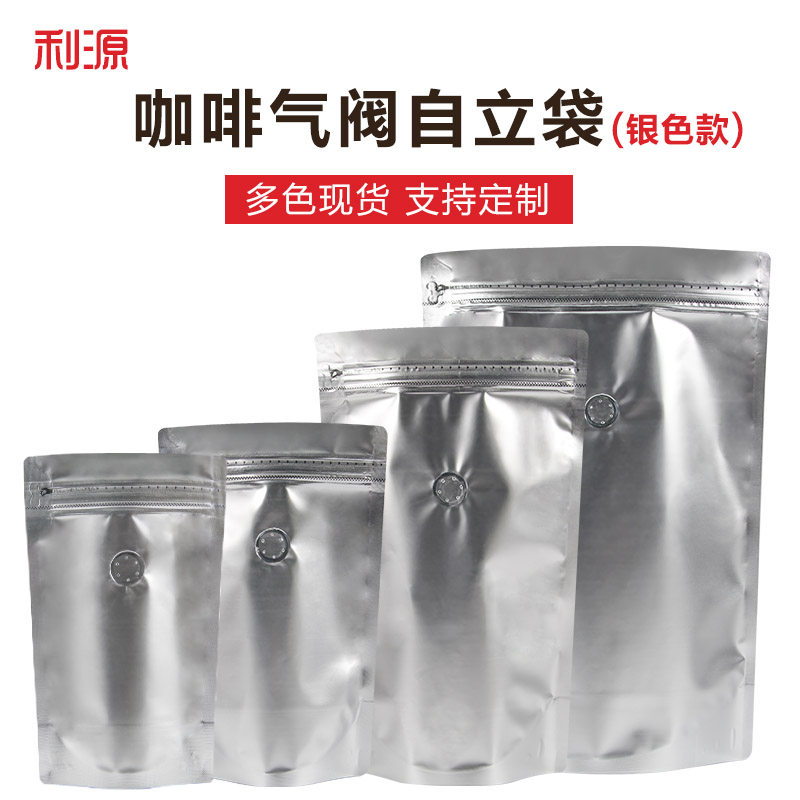 Бесплатная доставка Liyuan Silver Coffee Bag Сумка алюминиевая фольга Самоидушная сумка с застежки -молнией Однонаправленная санкер кофейная пакета.