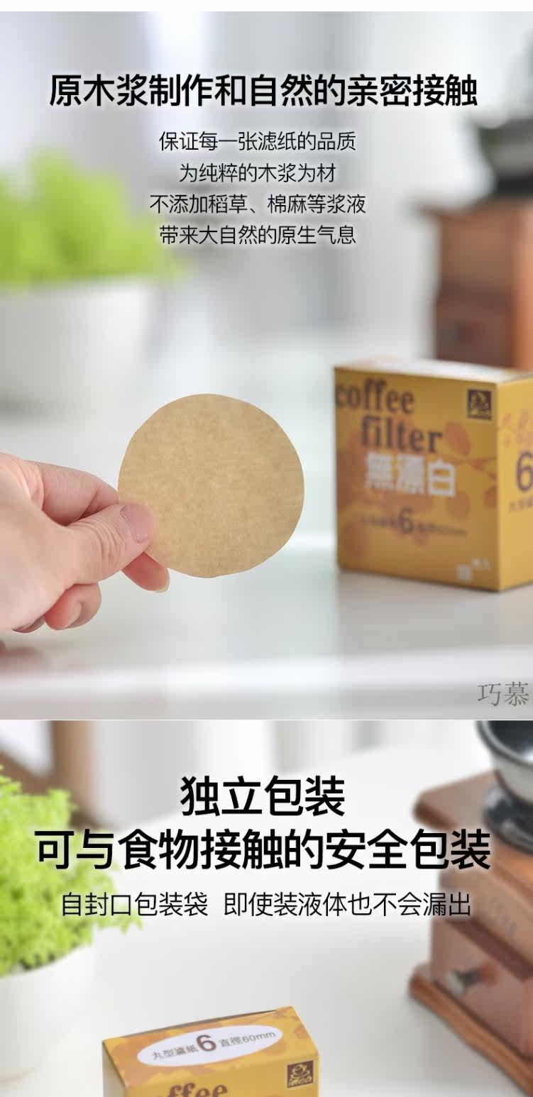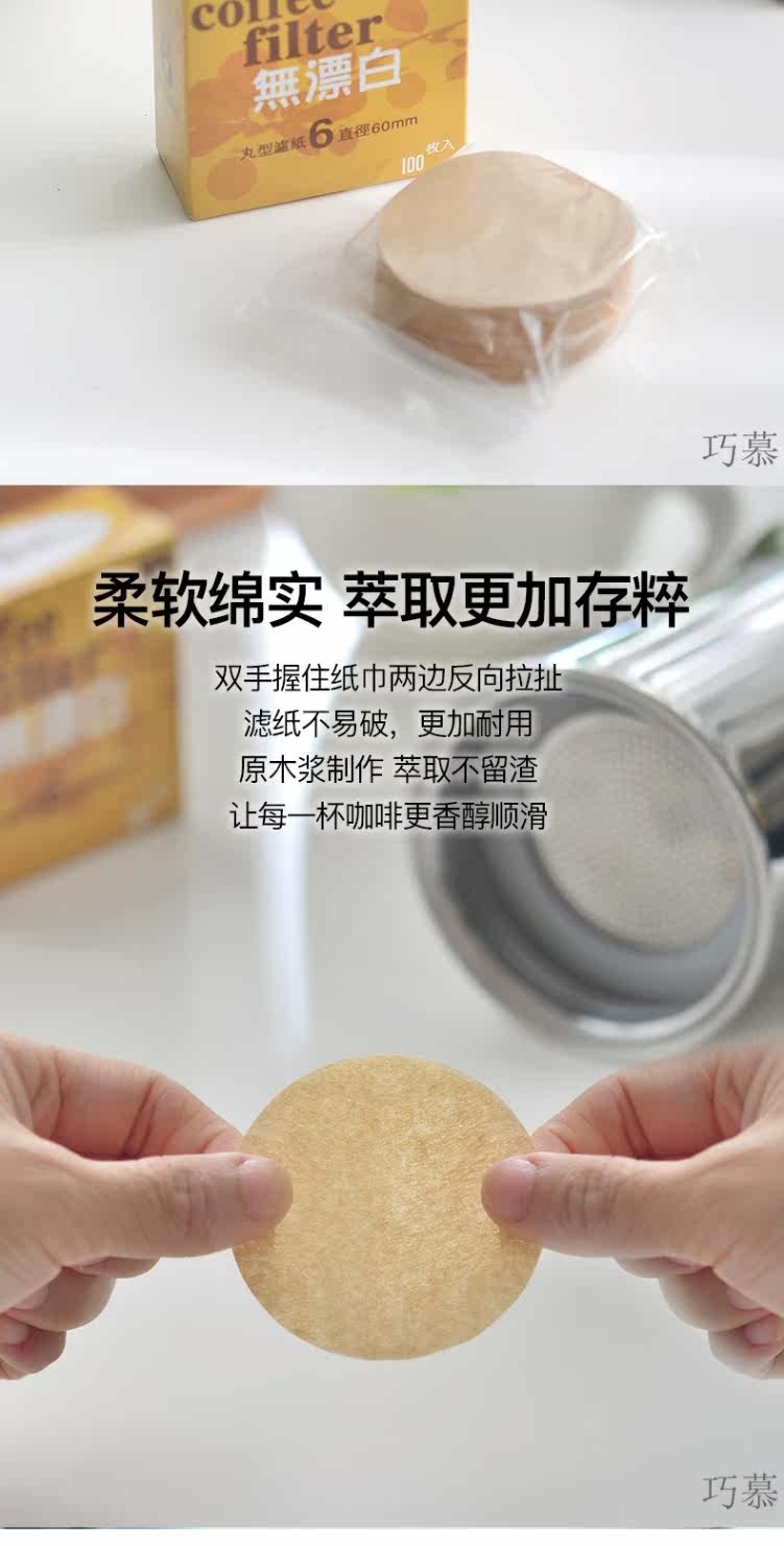 Qiaomu № 6 Мокко -фильтровая бумага 100 листов/коробка деревянная волокна круглая фильтровая бумага таблетка -в форме кофейной фильтра