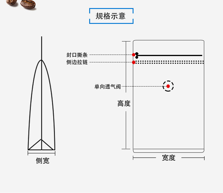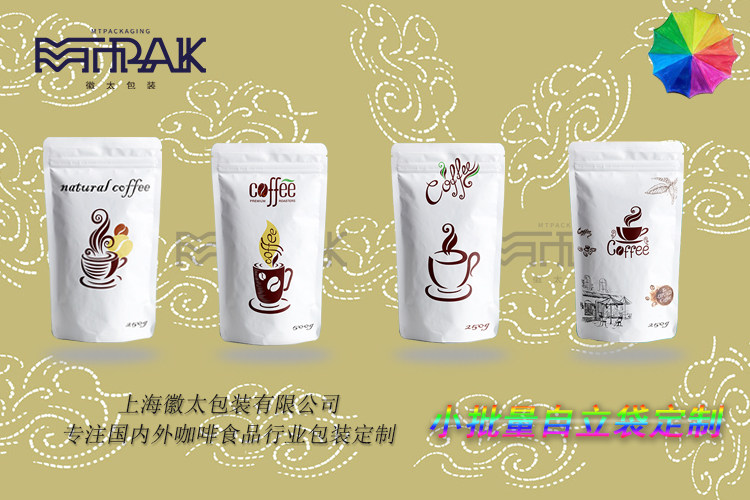 Белая кофейная упаковка, герметичный мешок, (в наличии на складе), 500G