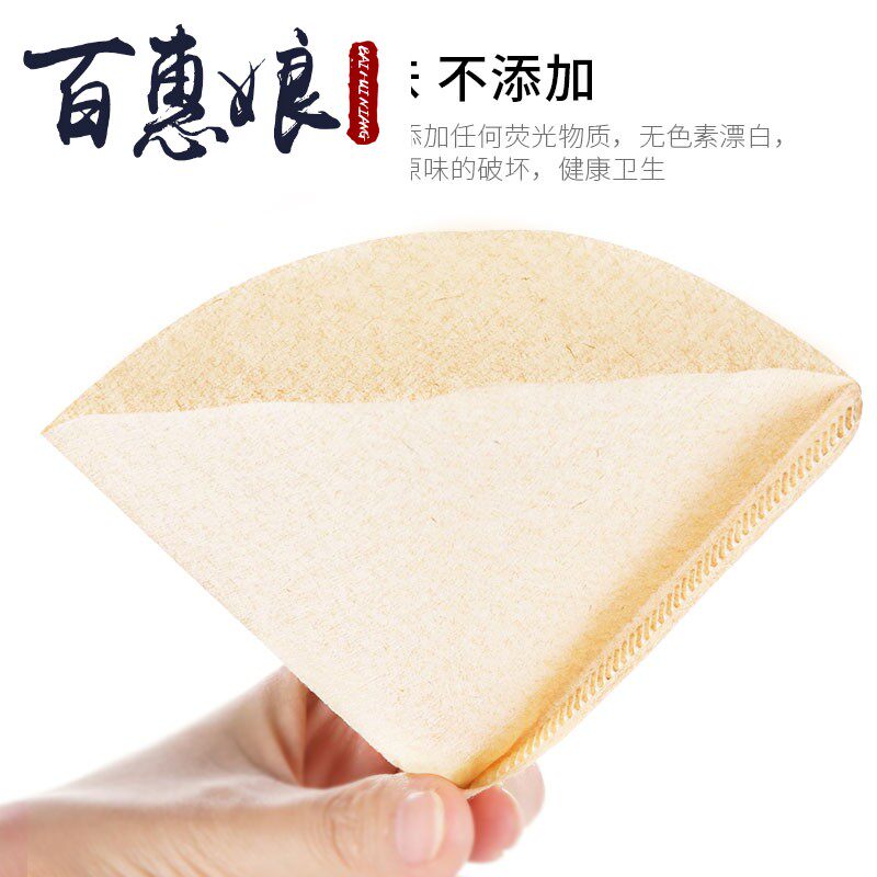 百惠娘 V-тип кофейная фильтровая бумага Конус 1-4 человека кофейная порошковая фильтровая фильтровая бумага капает кофейная горшка фильтровая бумага Первичный цвет