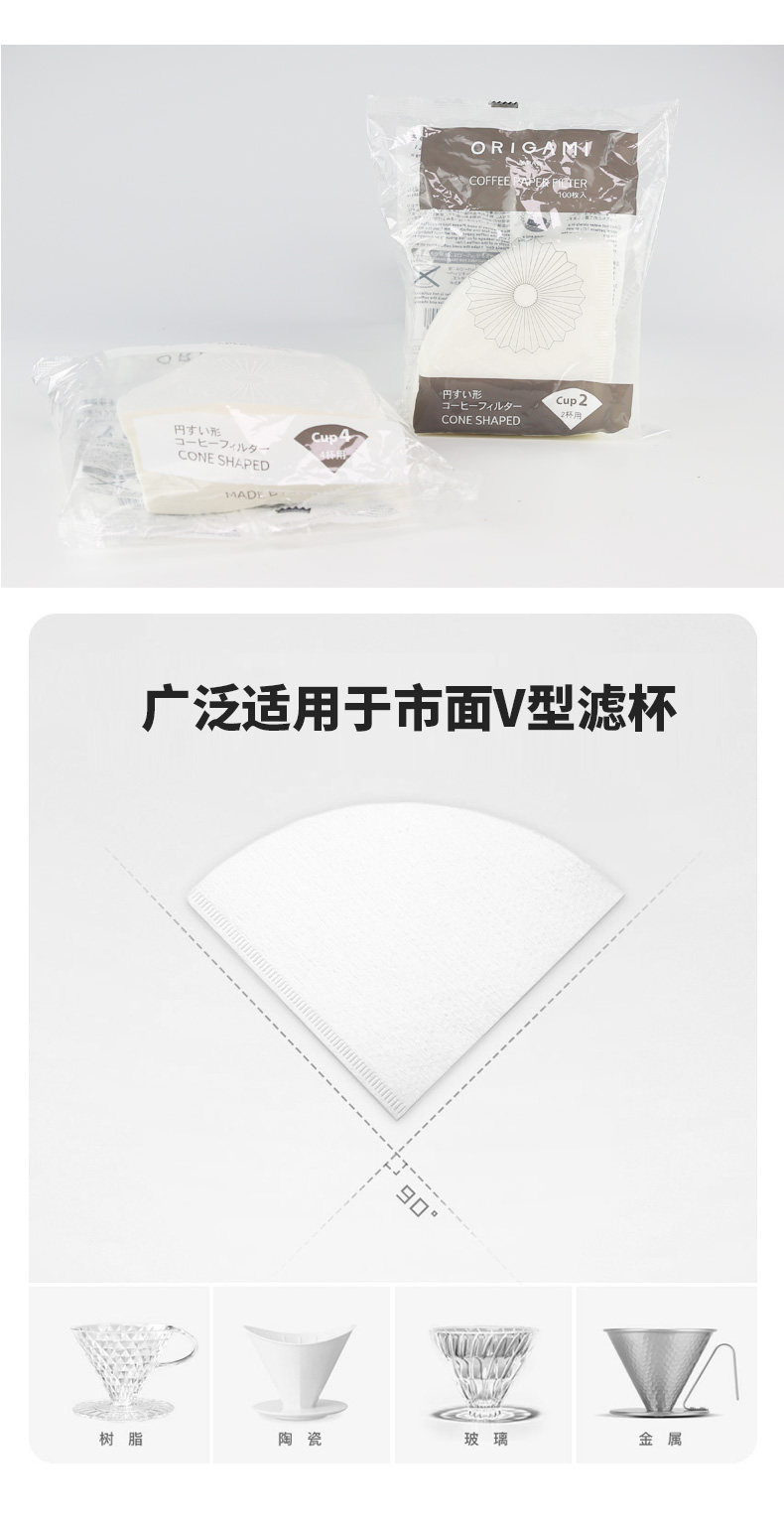 Оригами оригинальная импортная v60 Origami Filter Cup Cake Cake Ручная ручная фильтровая фильтровая бумага 2#4 человек 2 мешки