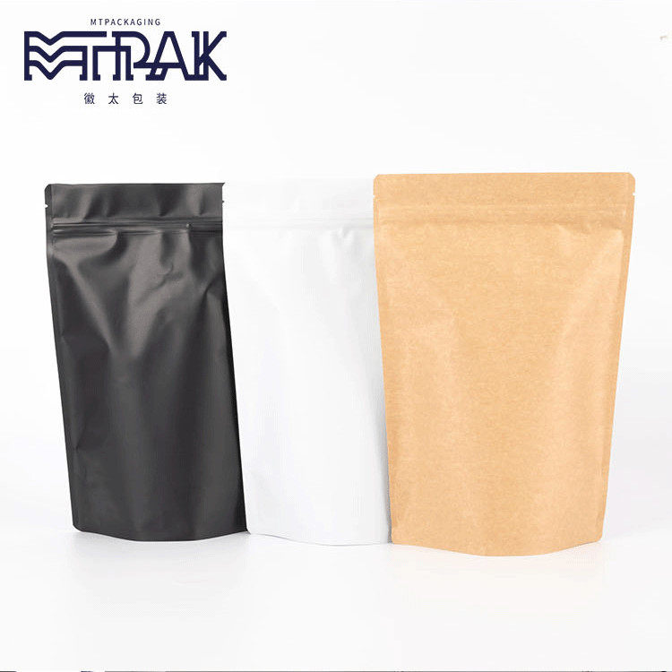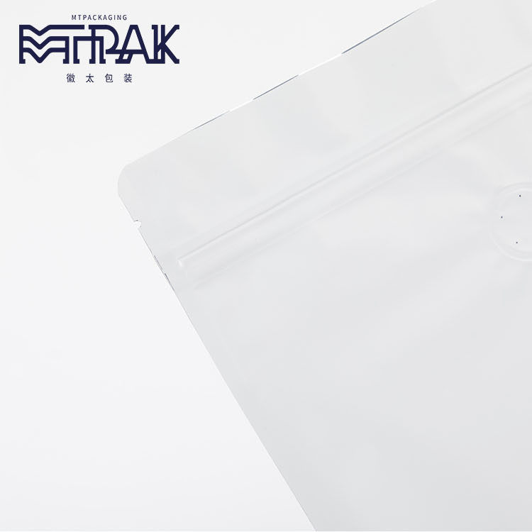- 500г матовый белый пакет-стойка + клапан + обычная молния 190*275*100мм 10 шт.