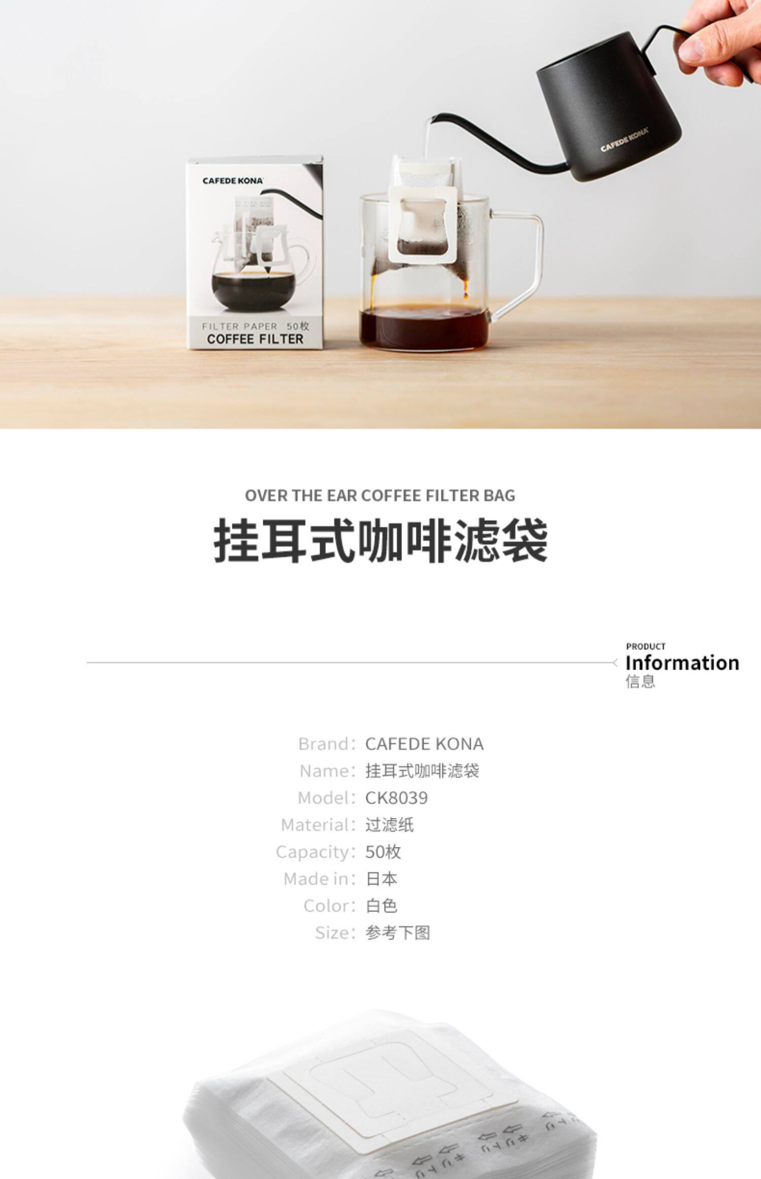 Cafede Kona Vishing Sear Coffee Sagns, ведущие вручную кофейную фильтру для ушных фильтров.