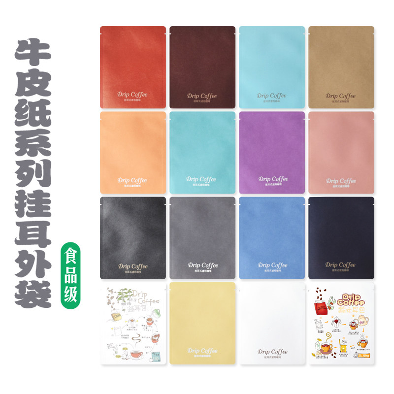 Кожаный кожаный бумажный пакет подвесной кофейный кофе внешний пакет Специальный бумажный алюминиевая фольга Сумка Цвет Кофе Ушной кофейный пакет 100