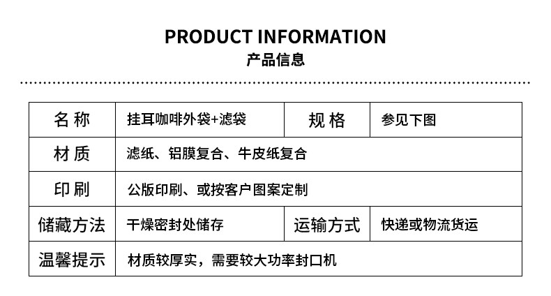 свойства продукта | Часть, снимающую ухо, можно привлечь к настройке (горячее золото, цветовая печать и т. Д.) | Часть, снимающую ухо, можно привлечь к настройке (горячее золото, цветовая печать и т. Д.) | Часть, снимающую ухо, можно привлечь к настройке (горячее золото, цветовая печать и т. Д.) | Сумка для кофейного фильтра рук (Цветовой квадрат) | Особенности: быстрая скорость потока, эффективная экстракция, не протекающий порошок | Особенности: Быстрая скорость потока, эффективная экстракция, без порошка, холодный, горячий, водный |