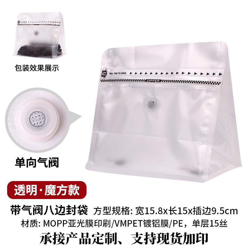 Zhanfei Half -Bypound Uniderectional выпускной клапан мешок кофе 10 прозрачная матовая алюминиевая фольга Сумка кофейные зерна упаковочные пакеты