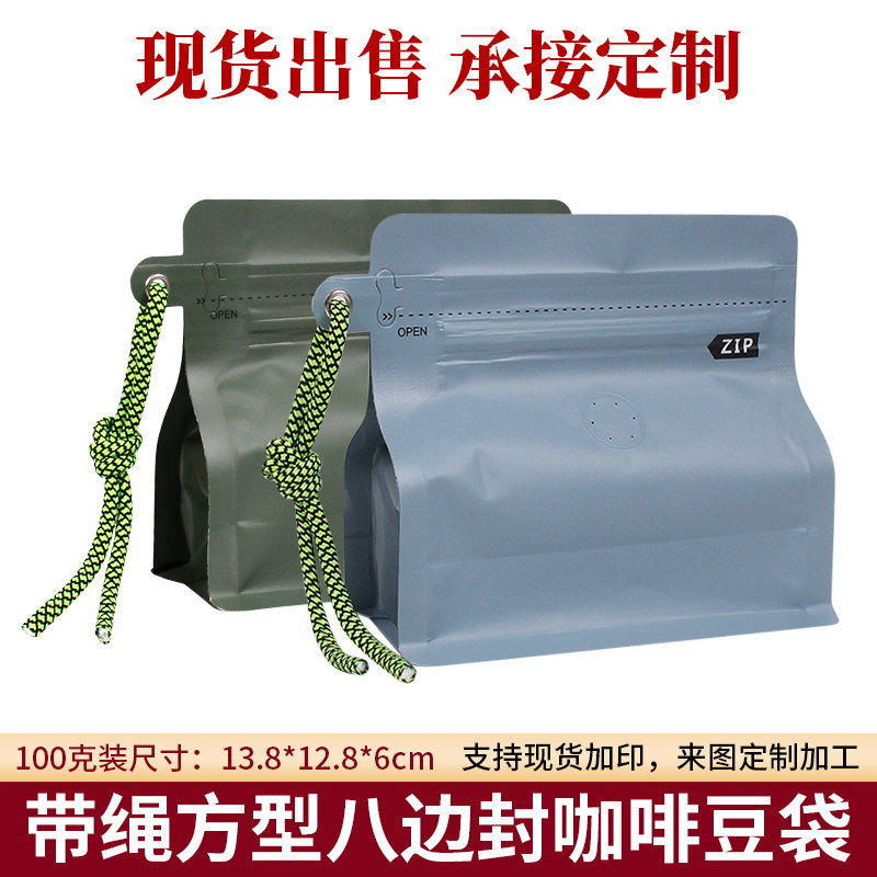 100 грамм мешки кофейного бобового бобов. Продолжительный вытяжной клапан 10 восьмиполированная бумага для кожи алюминиевая фольга Самостоятельная сумка для кофейной упаковки