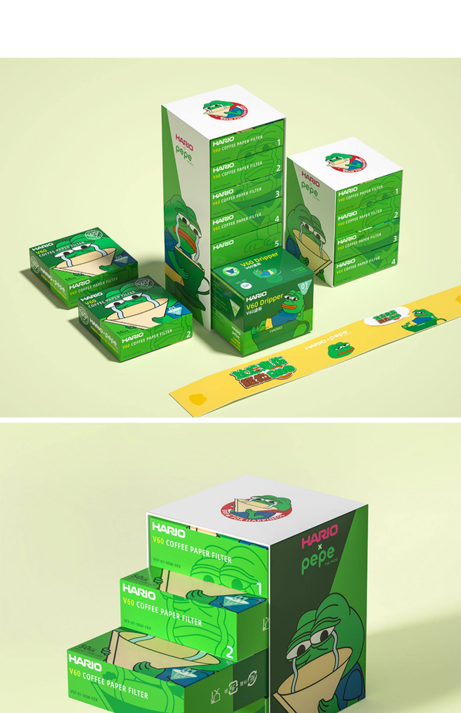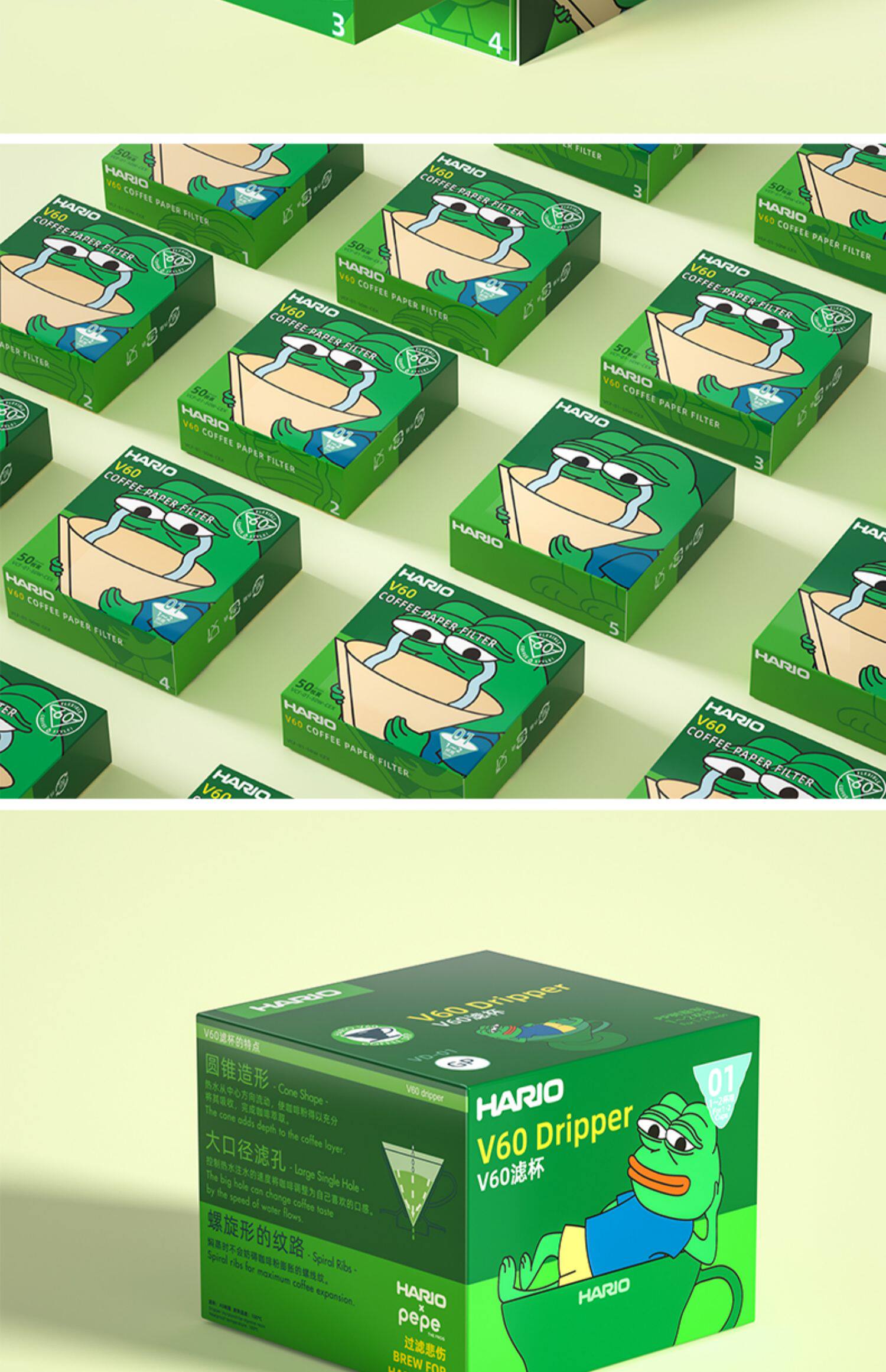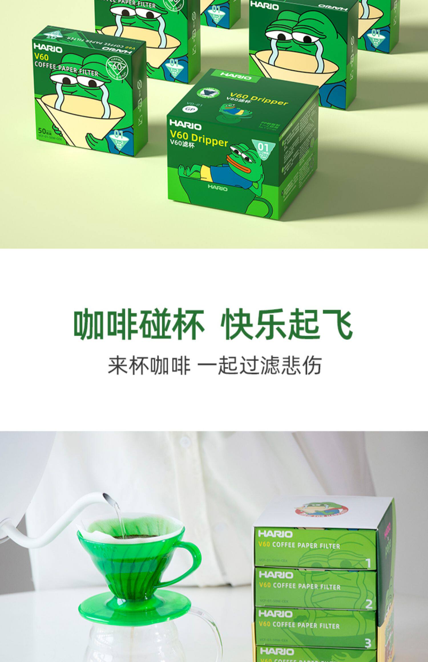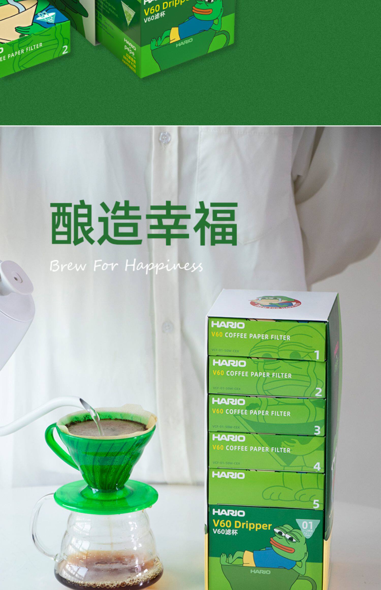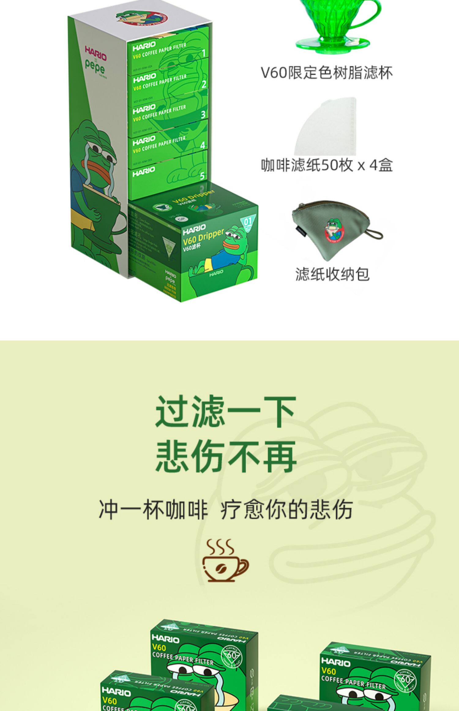 Япония Hario Pepe Sad Frog United Coffee Coffee Filter Paper V60 фильтровая бумажная пакет с ограниченным набором.