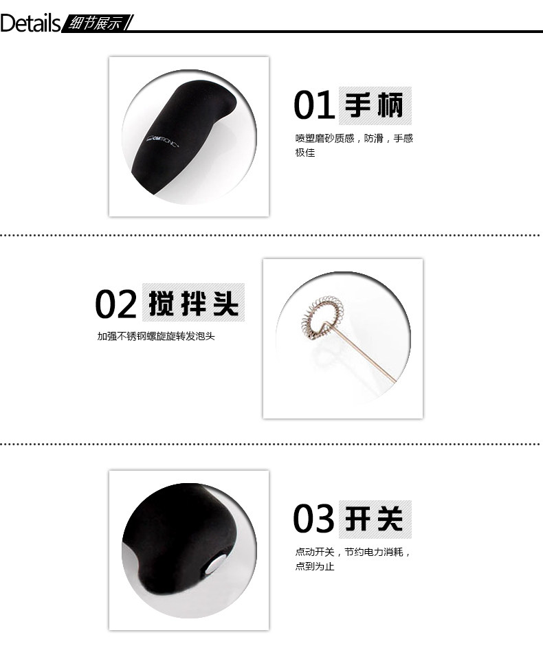 Распылитель пластиковой матовой ручки,Поворот головы -это нержавеющая сталь, корпус -это пластик ABS, конструкция без скольжения, ощущение хорошего.Общая длина составляет 215 мм, а молоко - 90 мм.Питание составляет 2 батареи LR6 (батарея 5), которая представляет собой очень практичную домашнюю причудливую кофейную посуду; ее также можно использовать в качестве фруктового и овощного сока и устройства избиения яичной жидкости. Это очень удобный кухонный помощник.