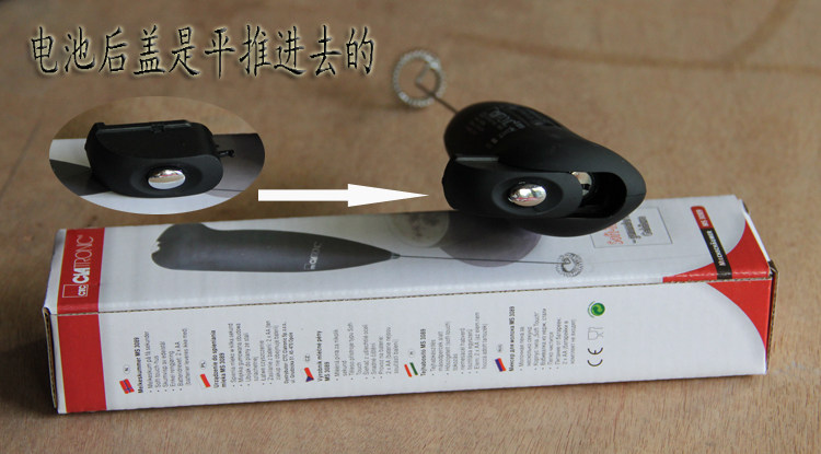 1. Приготовьте две батареи № 5, включите крышку аккумулятора в конце ручки, и в соответствии со значкой ручки с ударом яйца (не -печать, это диаграмма установки батареи, непосредственно образованная формой), и правильно установите батарею (обратите внимание на положительный и отрицательный полюс), накройте крышку батареи, нажмите переключатель (то есть яркая вещь внизу ручки), чтобы увидеть, работает ли он нормально. Если он работает нормально,, Тогда этот шаг в порядке. Если вы не поверните его, пожалуйста, проверьте, является ли батарея положительным и отрицательным электродом.