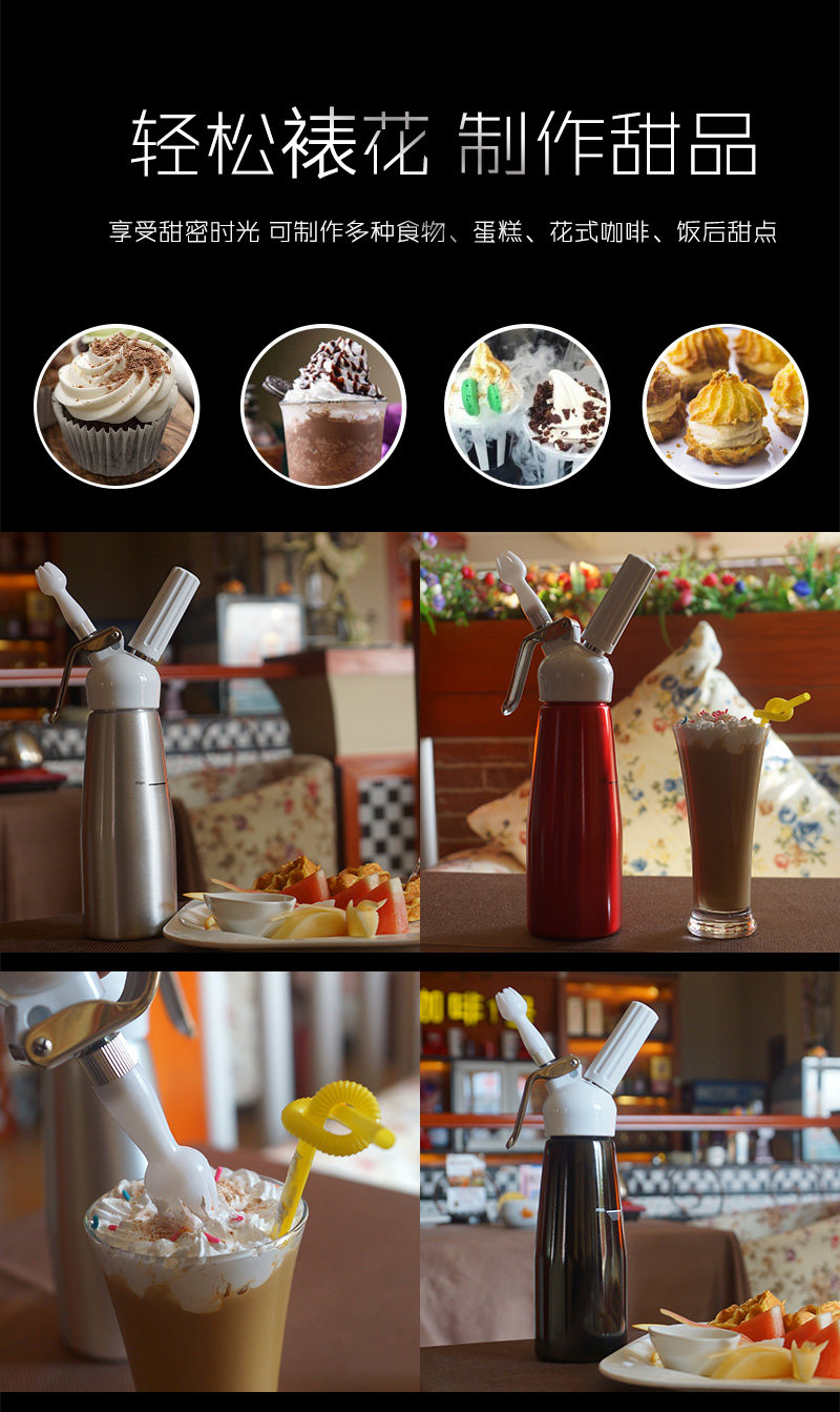 Кремовый кремовый крем кремовый крем декоративный кофейный монтарь снежный топ -производитель мороженого бутылка Siphon