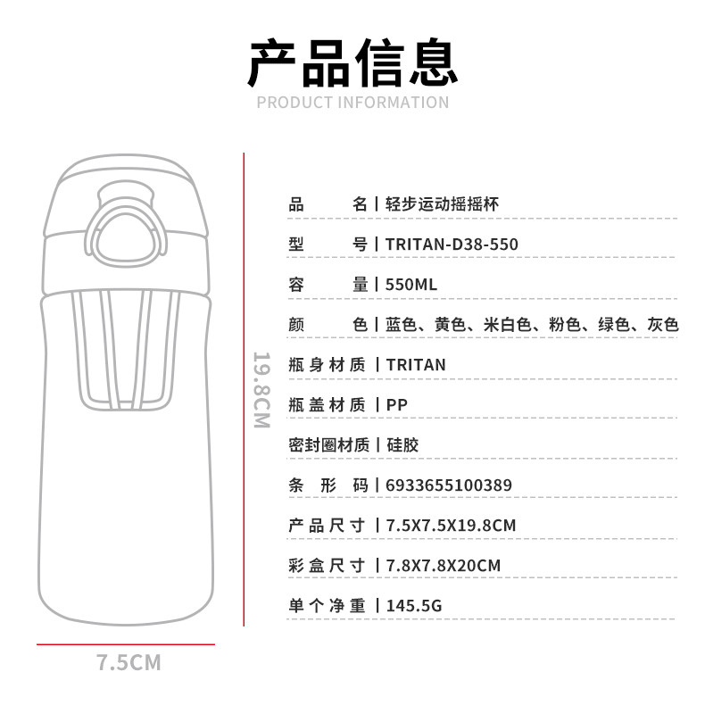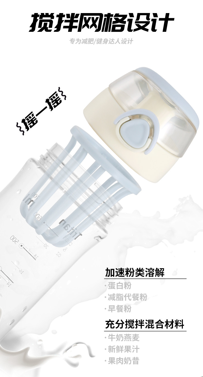 Качалка, вместительная и большая пластиковая портативная палочка для смешивания со шкалой для воды со стаканом для спортзала