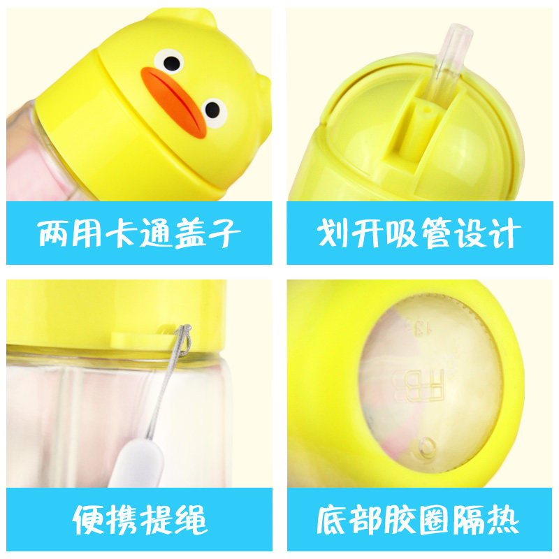 Мультяшная детская стеклянная милая портативная трубочка для школьников, в корейском стиле, защита при падении