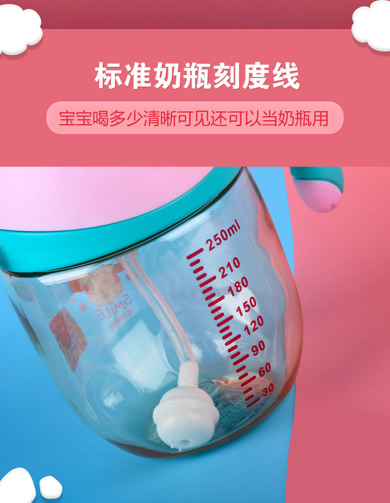 Дисней, трубочка со стаканом, герметический детский стакан со шкалой
