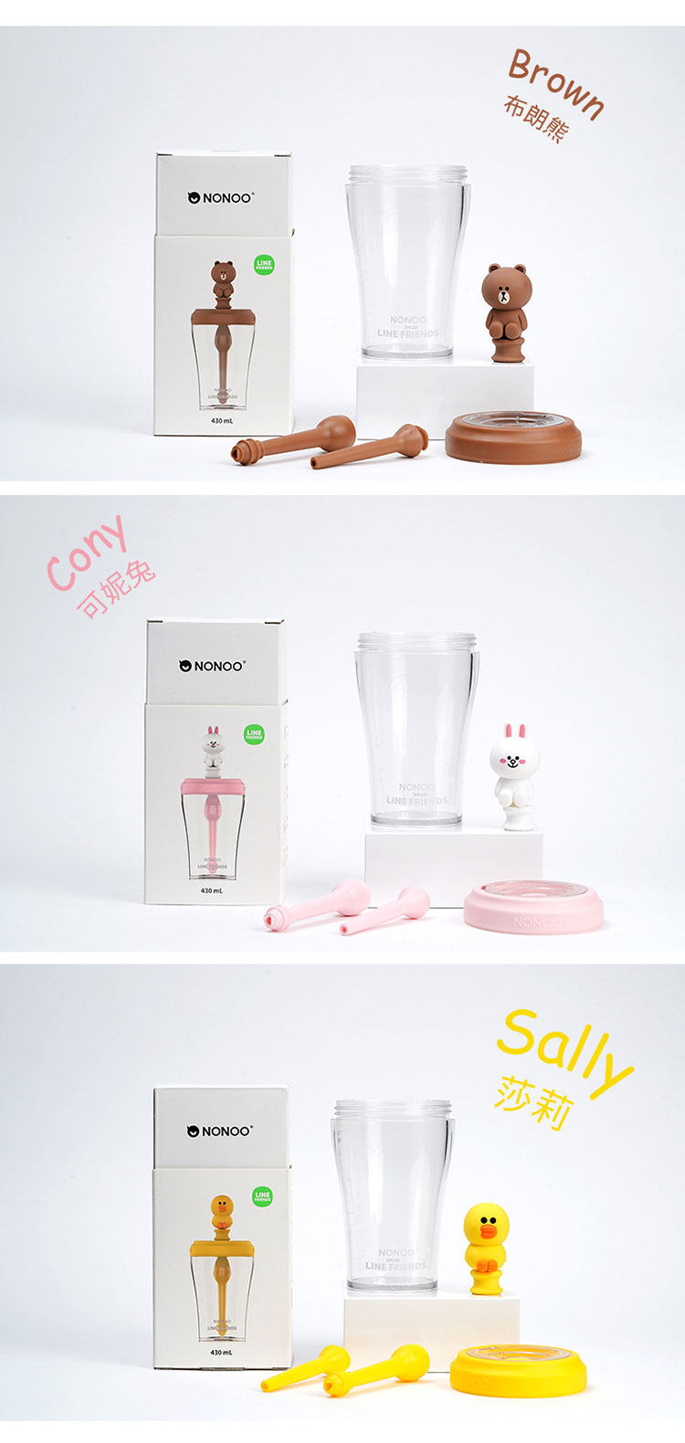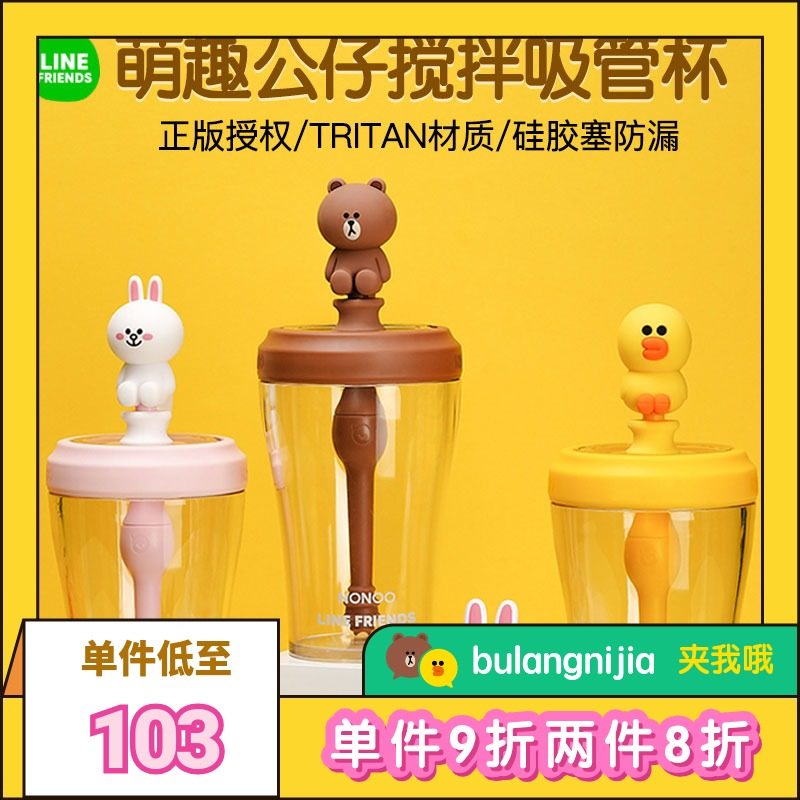 Line friends, кукла, стакан, силиконовая герметическая палочка для смешивания со стаканом