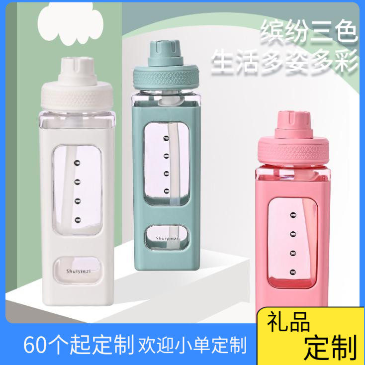 Вместительная и большая спортивная бутылка, пластиковая квадратная трубочка подходит для мужчин и женщин, 700 мл, делается под заказ, с печатью вашего логотипа