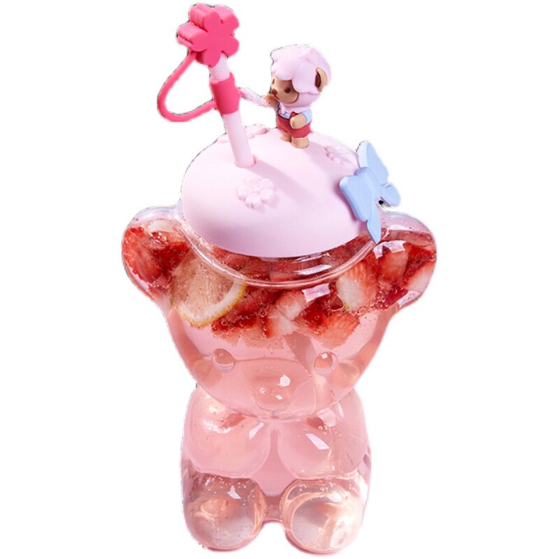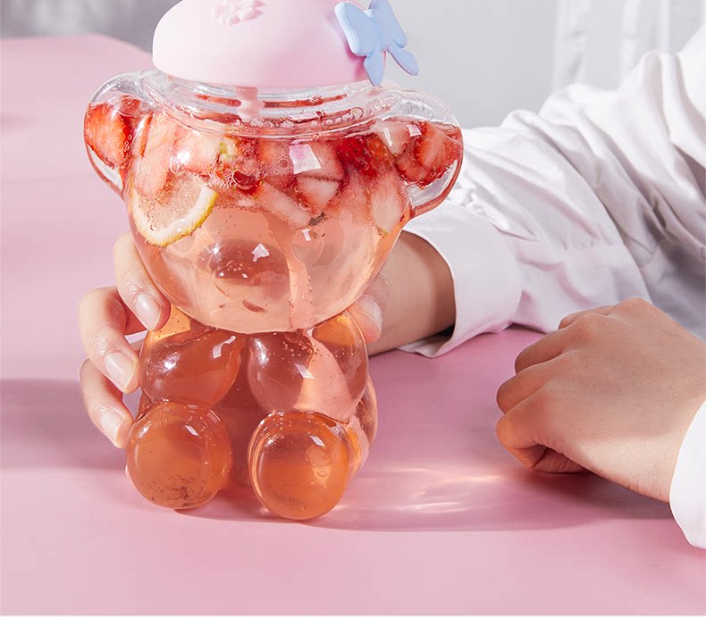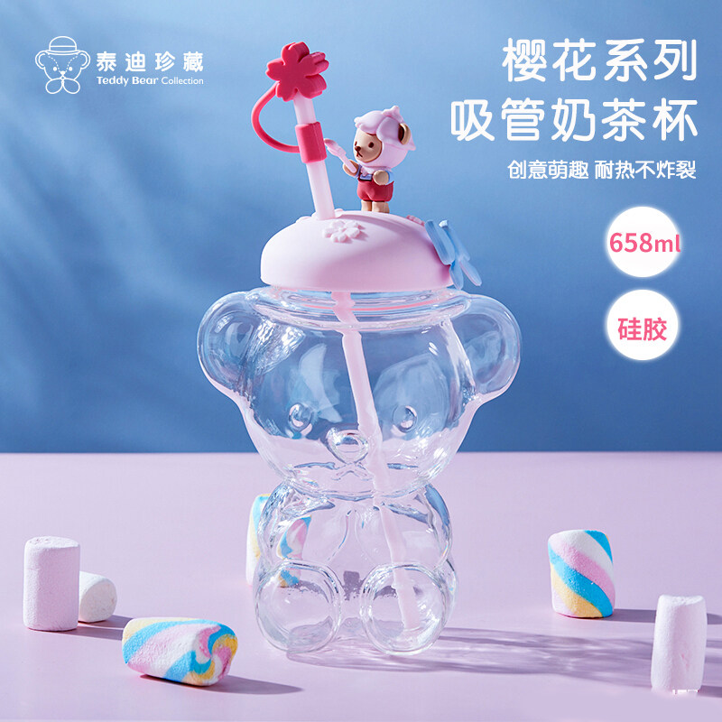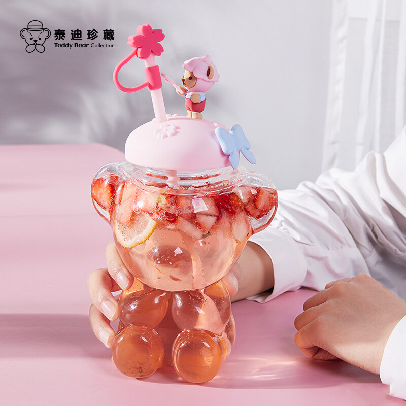 Милая чайная чашка, стеклянная высококачественная трубочка со стаканом, с медвежатами