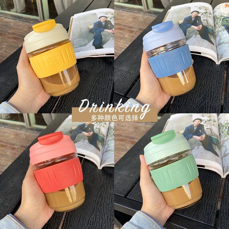 Стеклянная милая кофейная портативная трубочка со стаканом подходит для мужчин и женщин, в корейском стиле, популярно в интернете