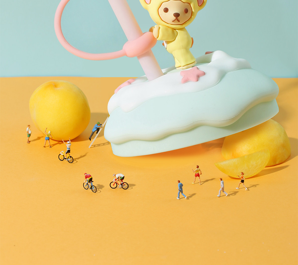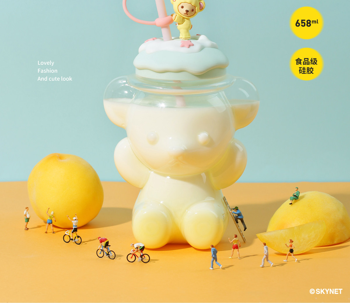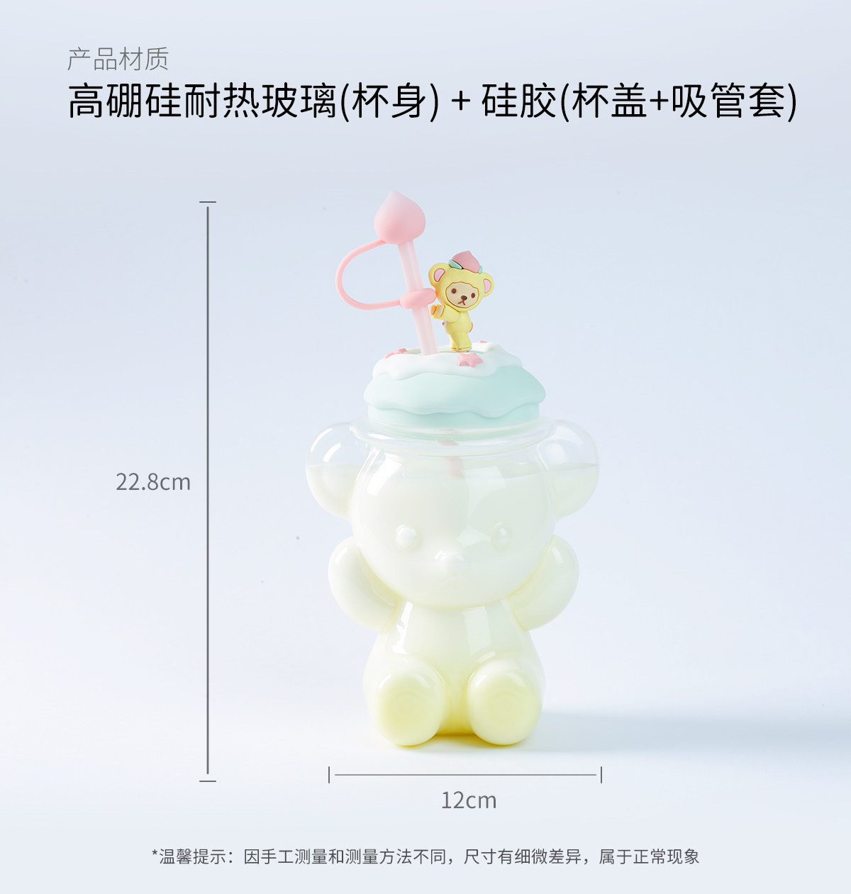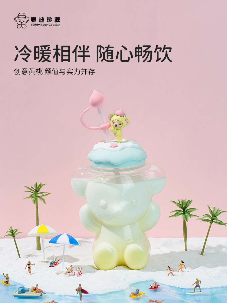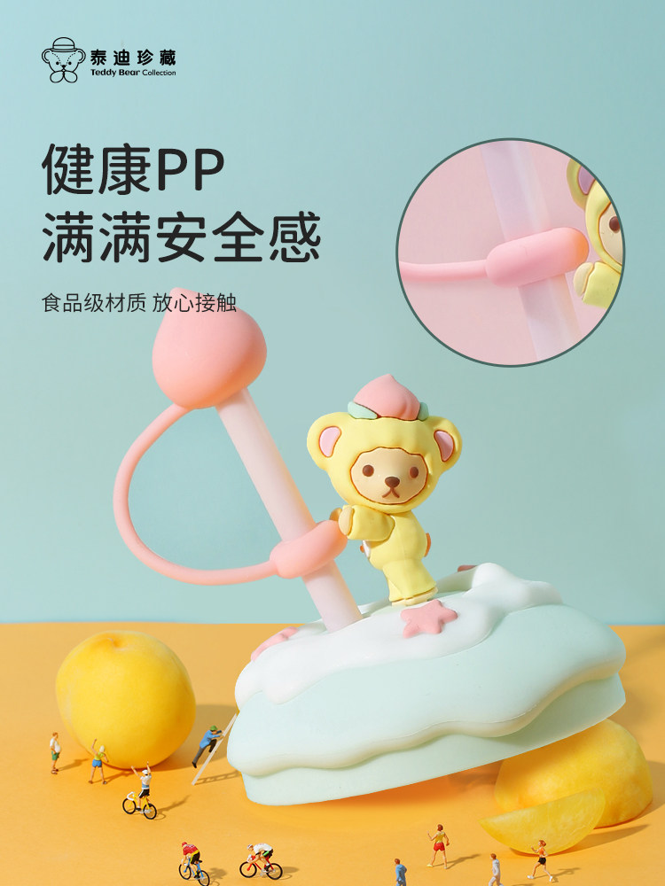 Милая чайная чашка, стеклянная трубочка со стаканом, ручка, с медвежатами