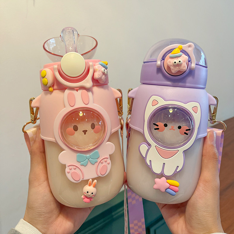 Милая детская высококачественная трубочка со стаканом, пластиковый вместительный и большой портативный чайник, брендовая сумка через плечо, защита при падении
