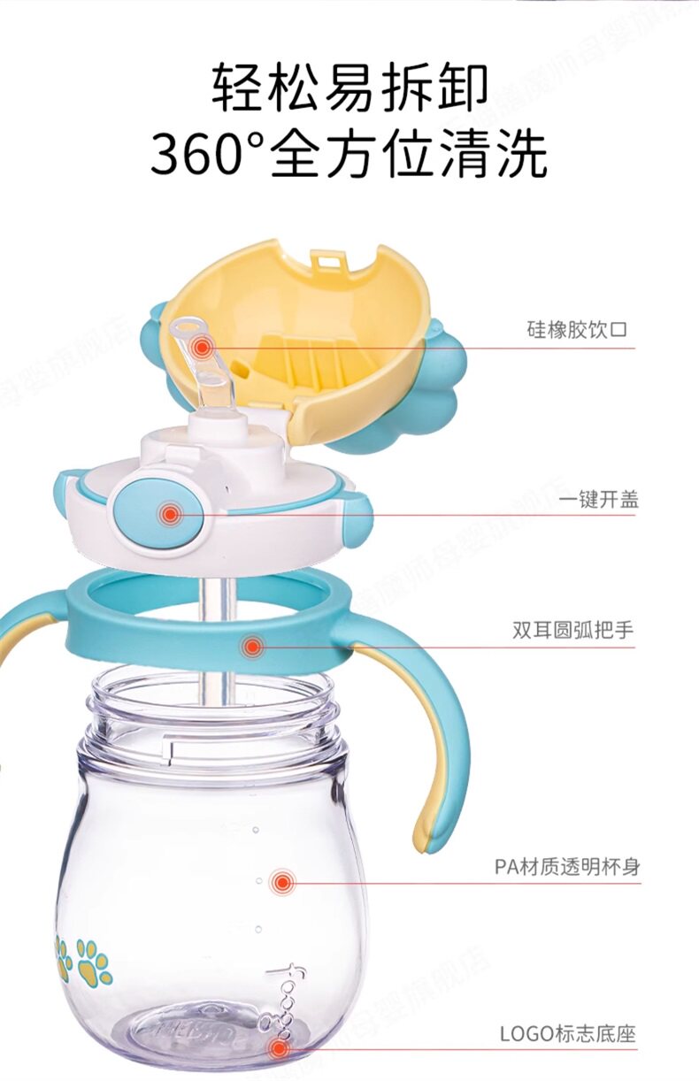 Детская мультяшная трубочка со стаканом, ручка, пластиковый стакан для раннего возраста, защита при падении