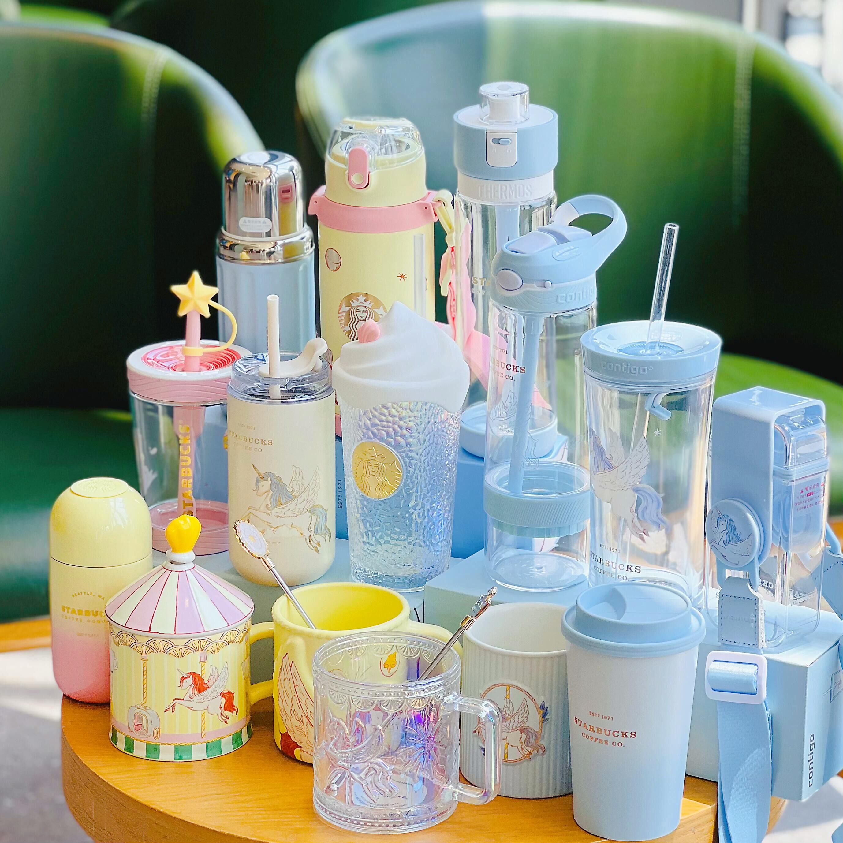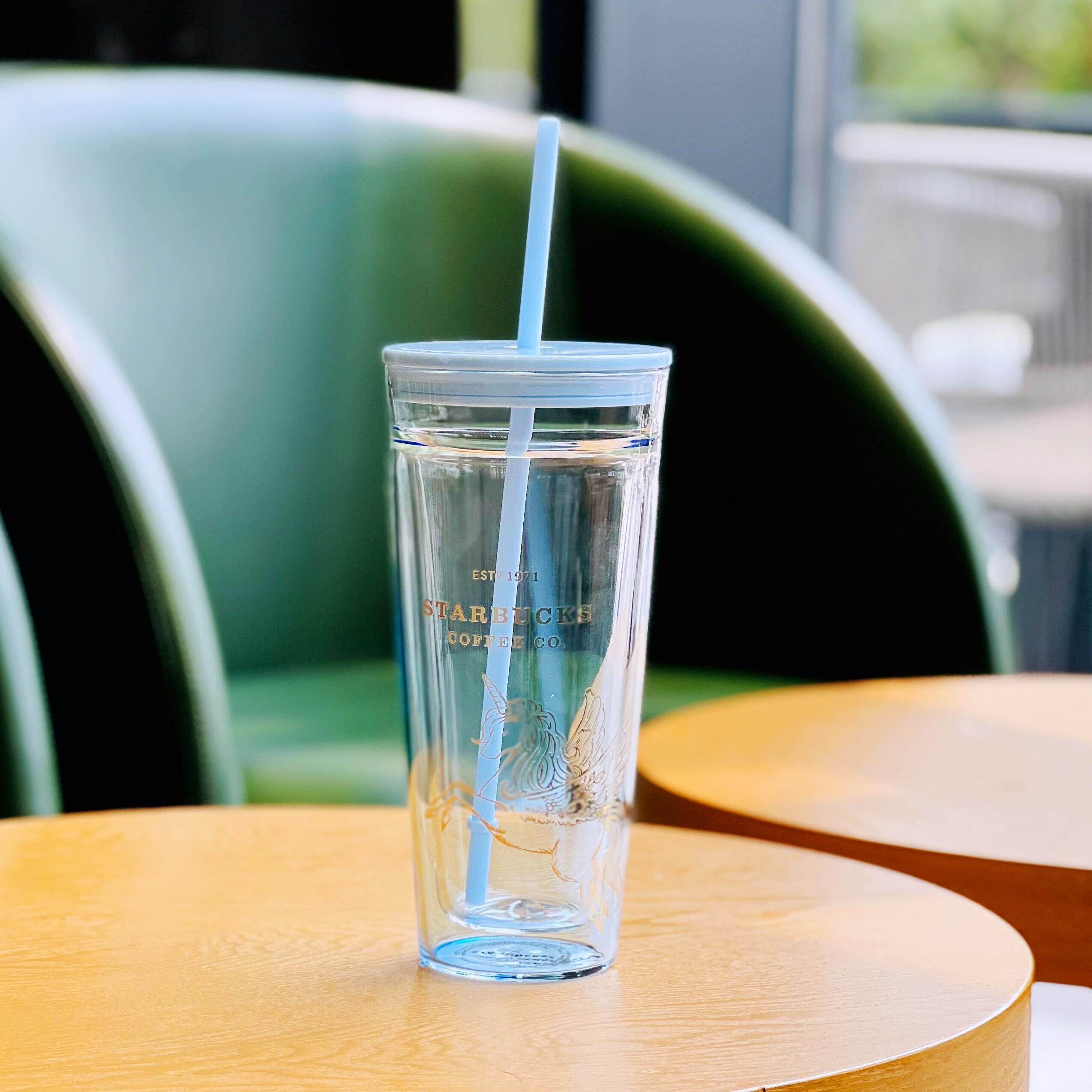 Starbucks, кофейная двухэтажная стеклянная вместительная и большая трубочка со стаканом, градиент