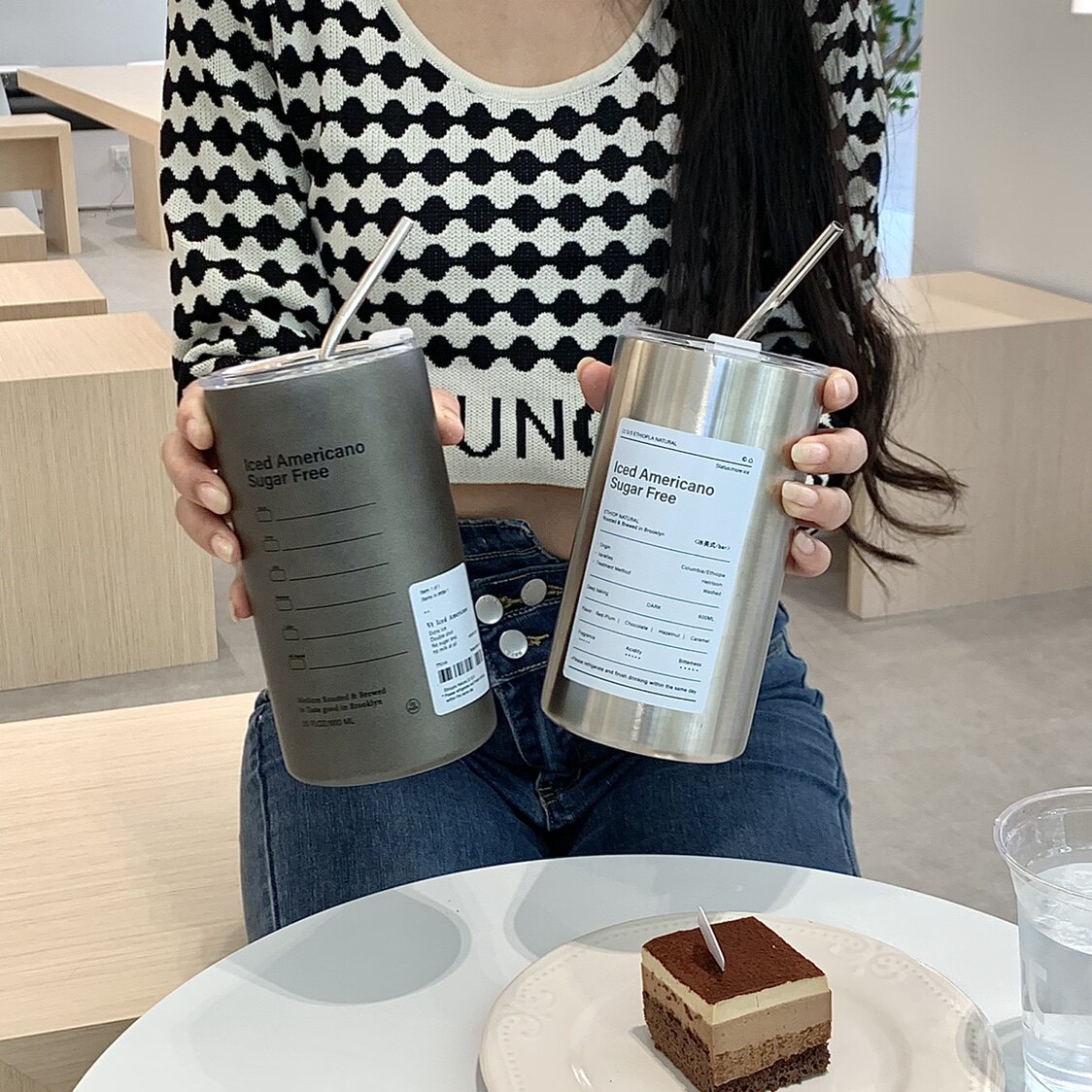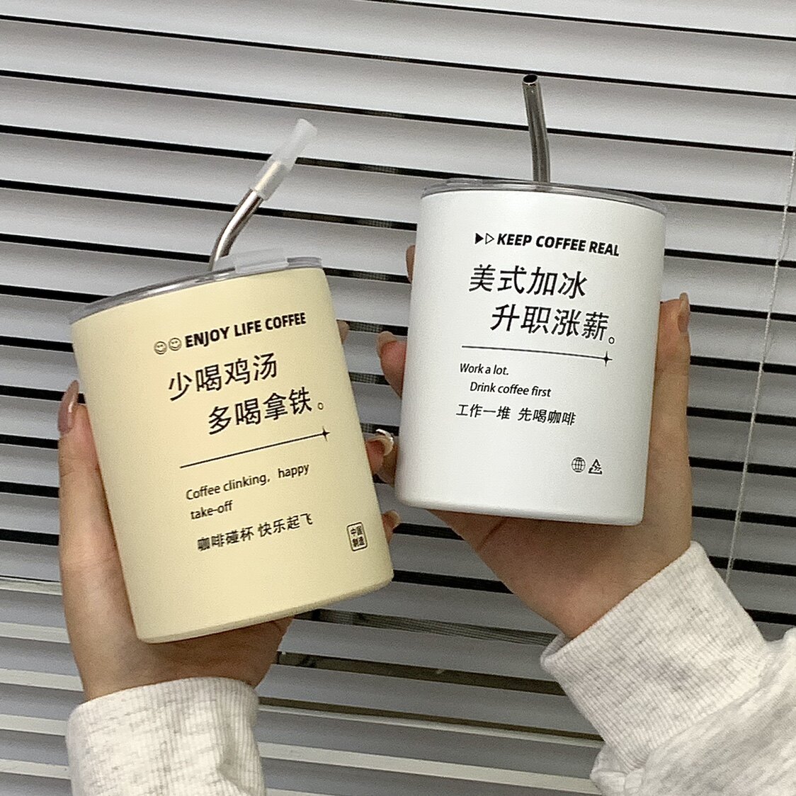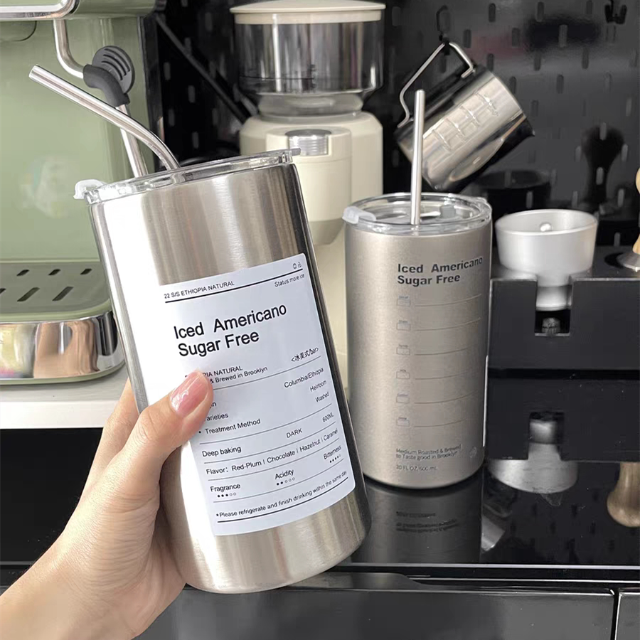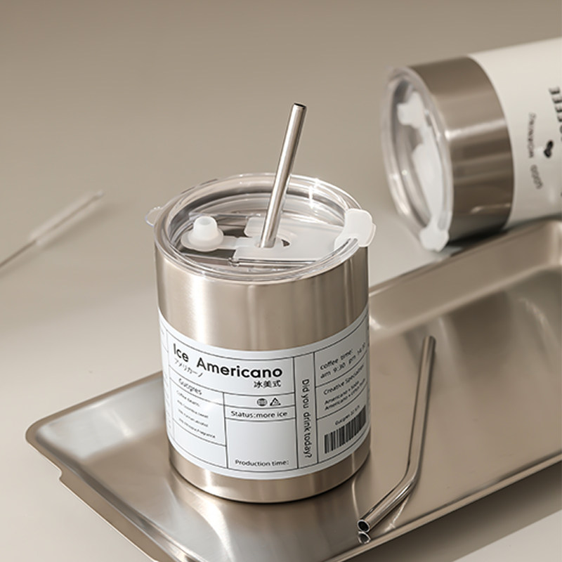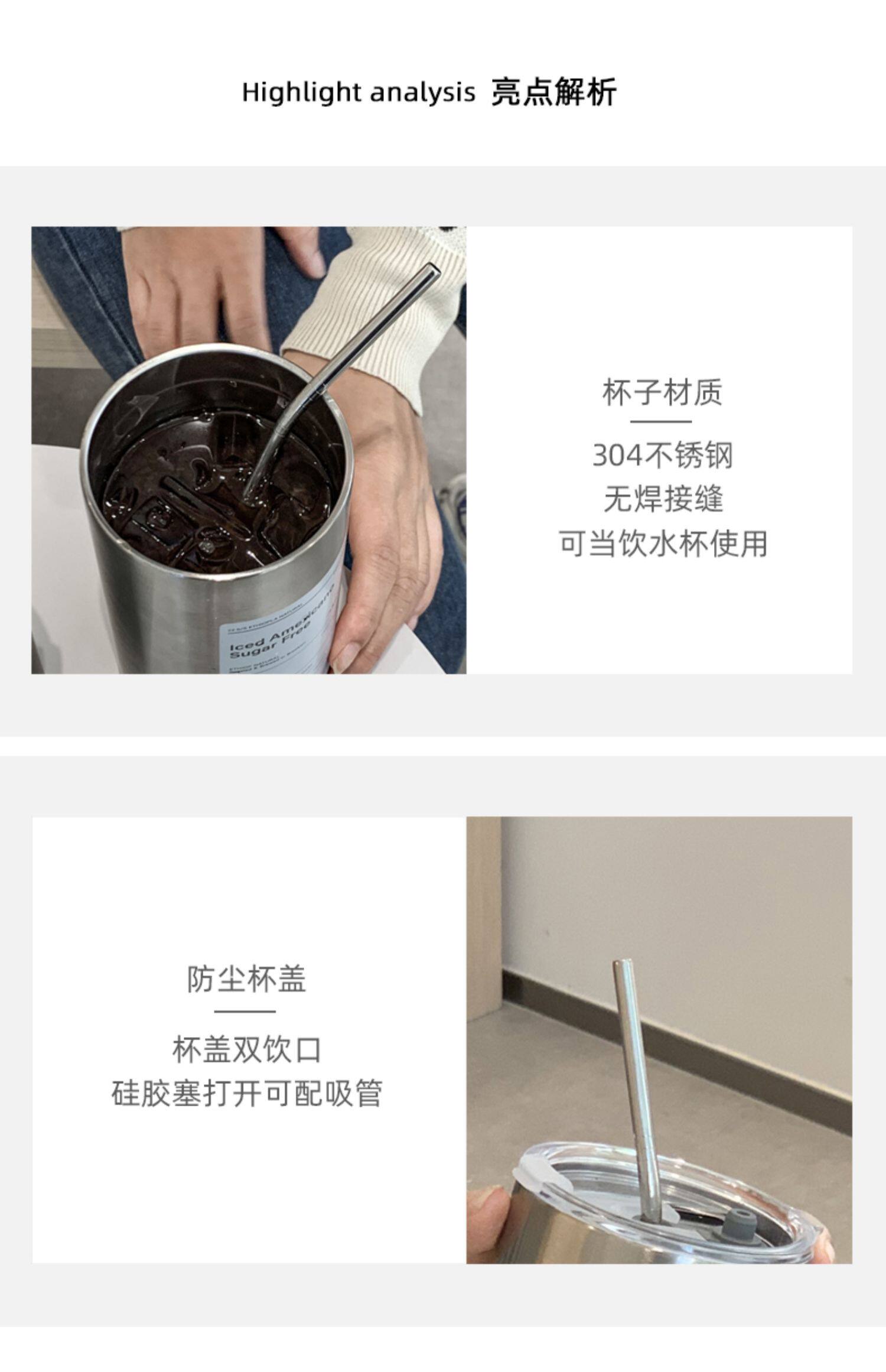 Изысканный кофейный термос со стаканом, портативная трубочка из нержавеющей стали подходит для мужчин и женщин, простой и элегантный дизайн