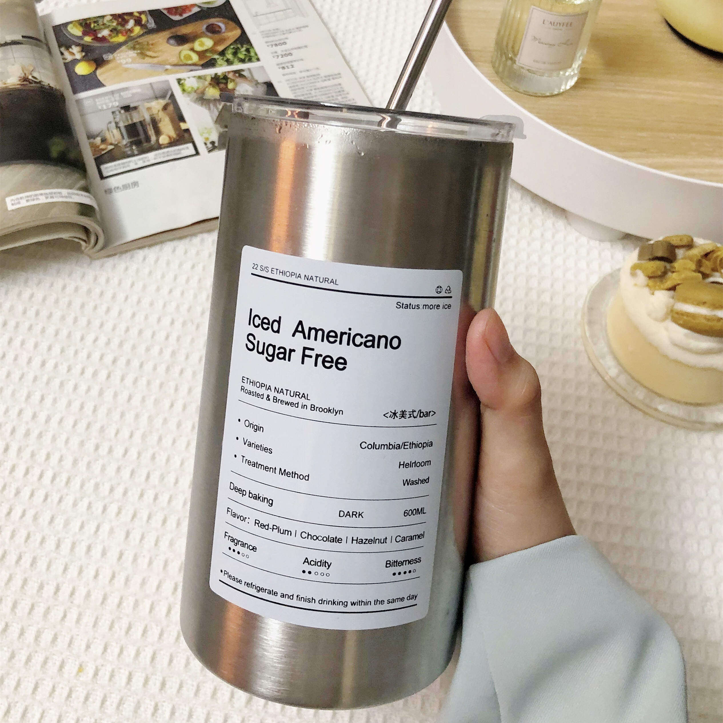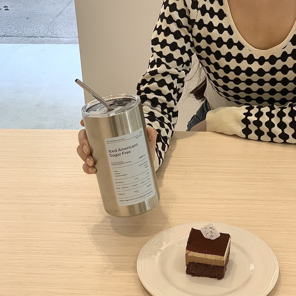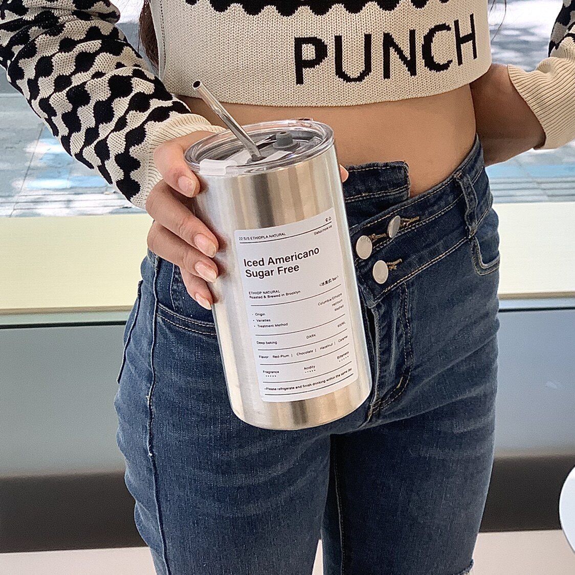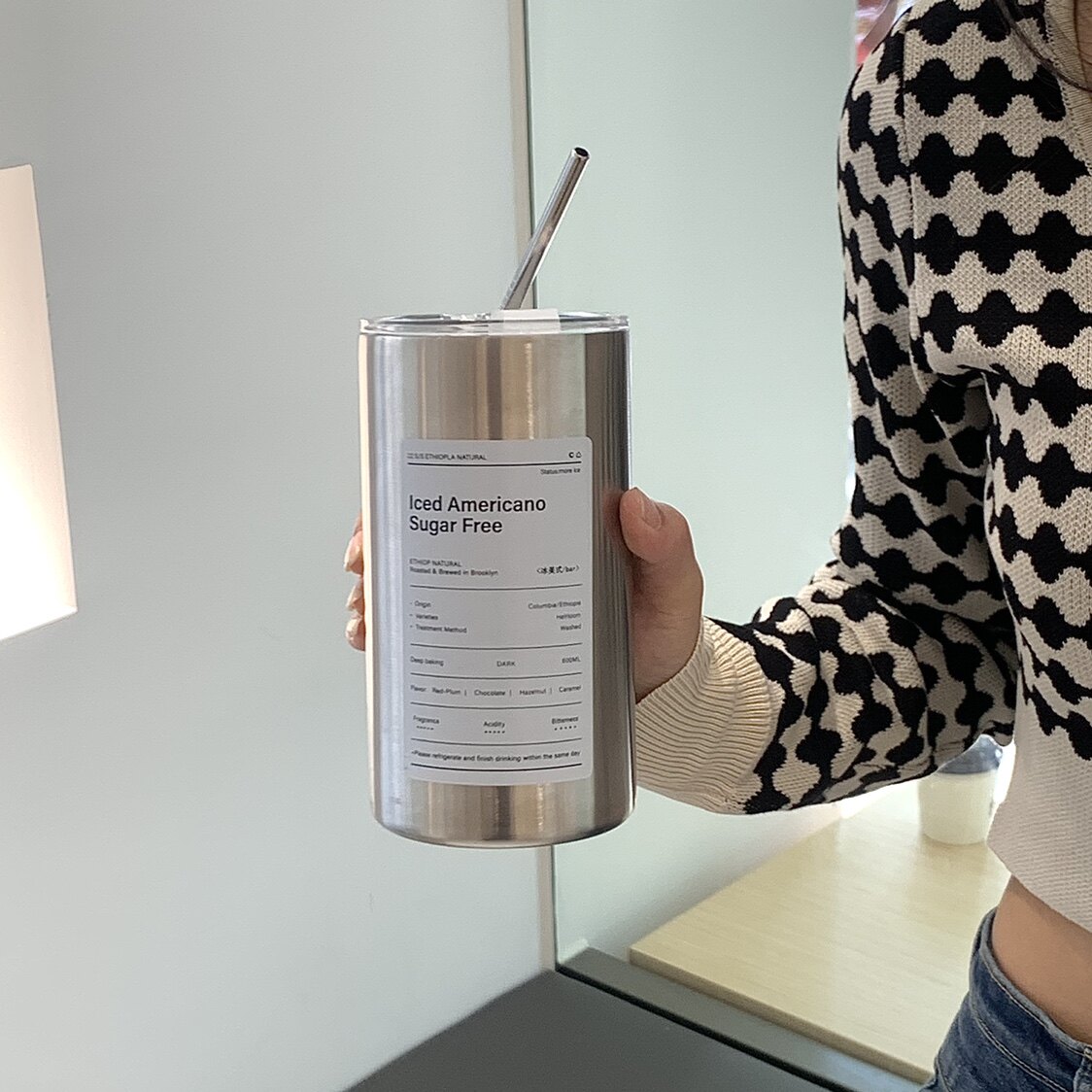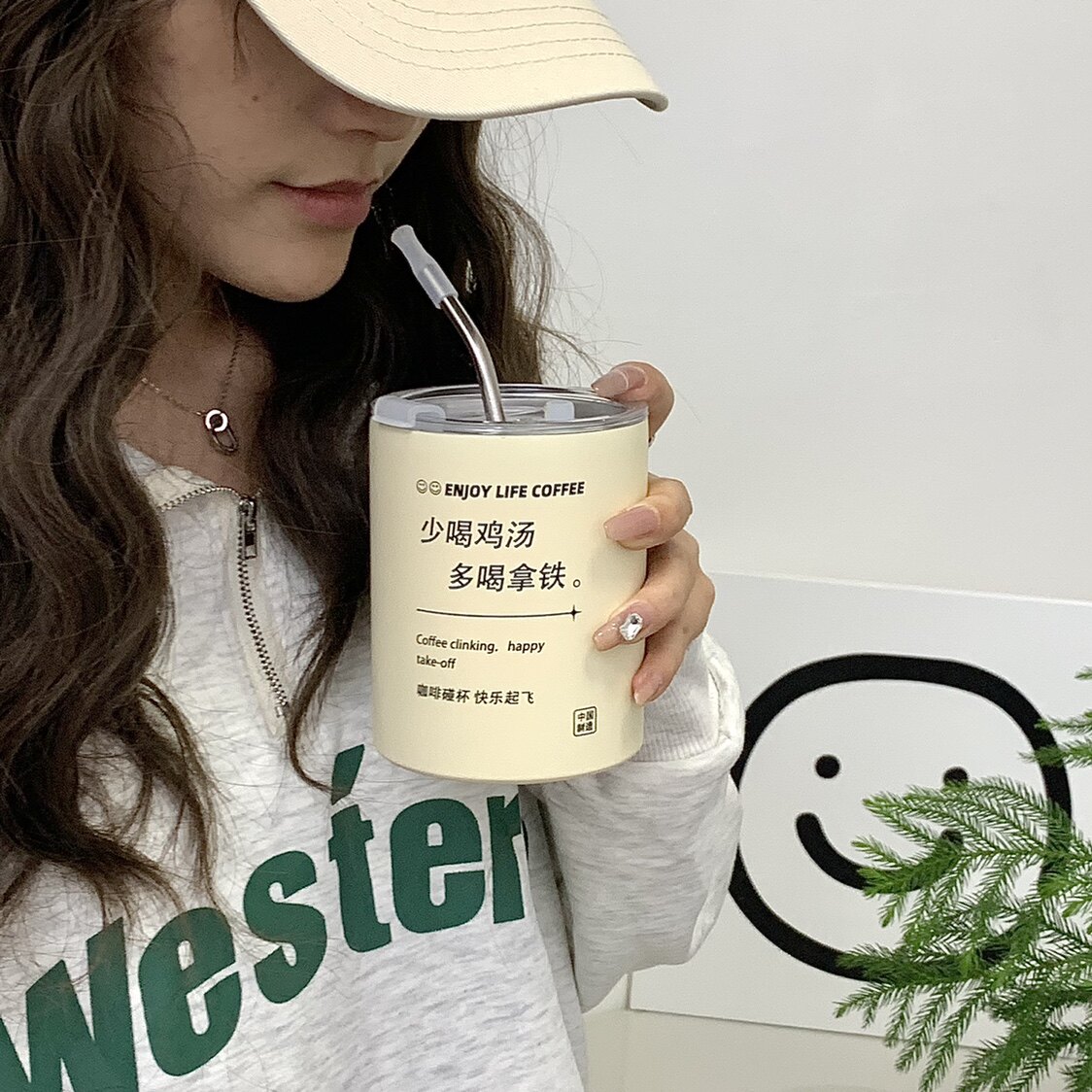 Изысканный кофейный термос со стаканом, портативная трубочка из нержавеющей стали подходит для мужчин и женщин, простой и элегантный дизайн