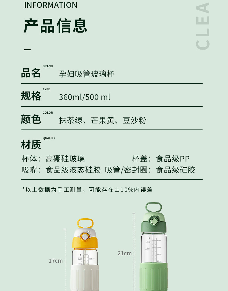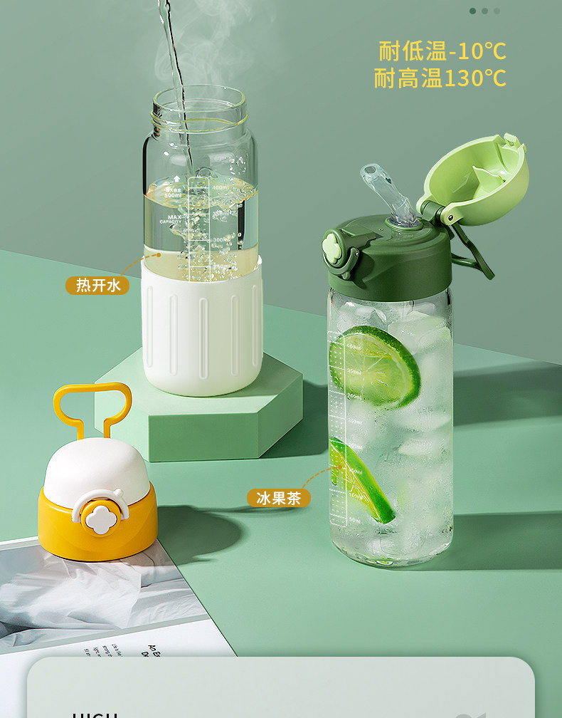 Стеклянный портативный летний стакан для молодой матери со шкалой со стаканом
