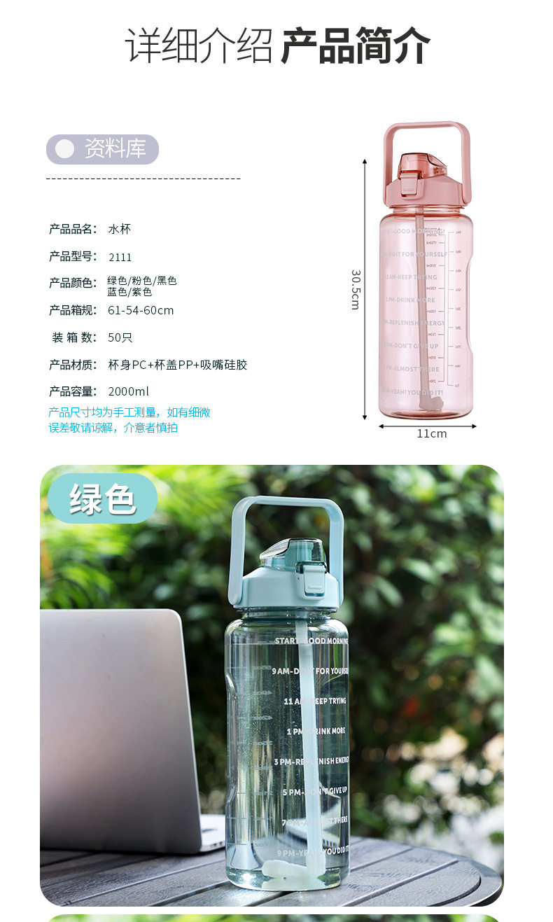 Большая спортивная летняя пластиковая трубочка со стаканом, 2000 мл, популярно в интернете