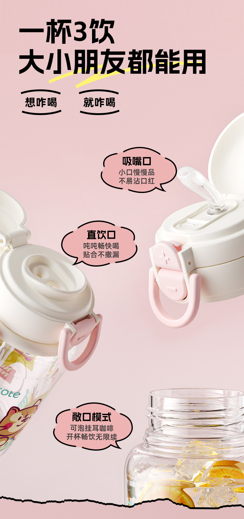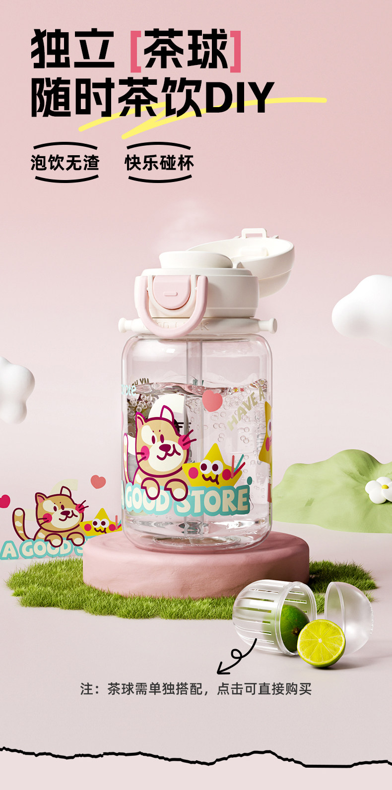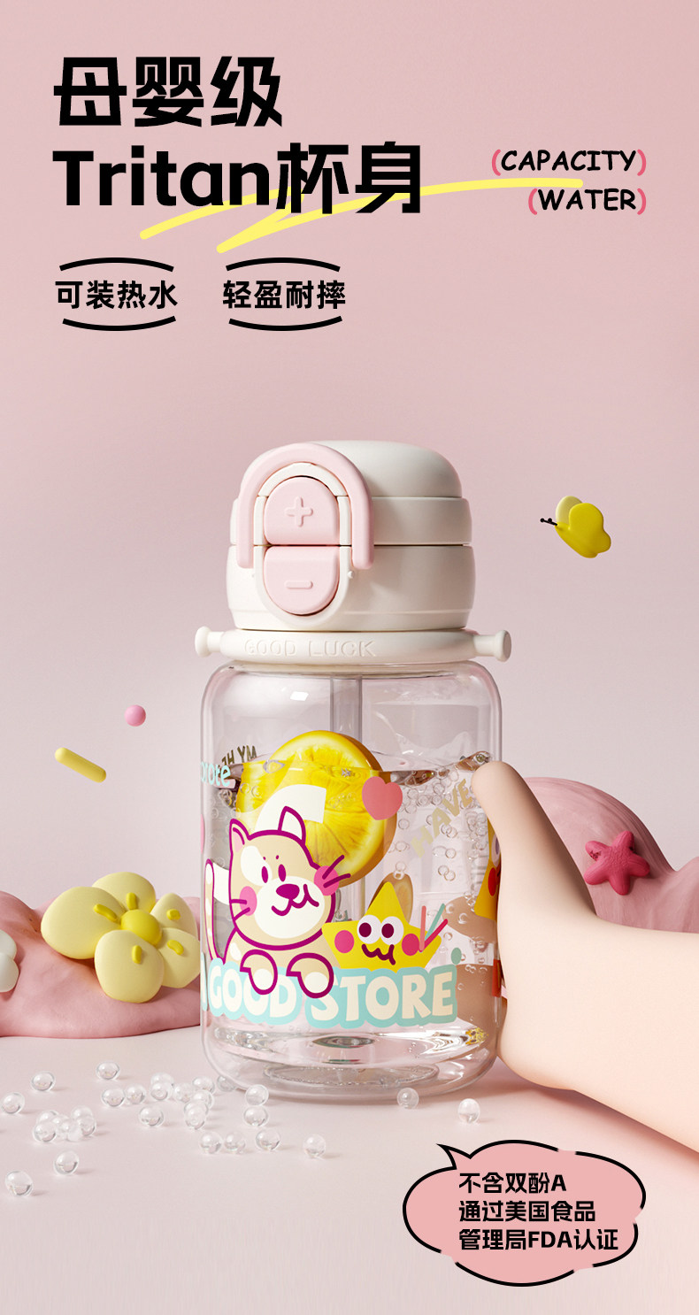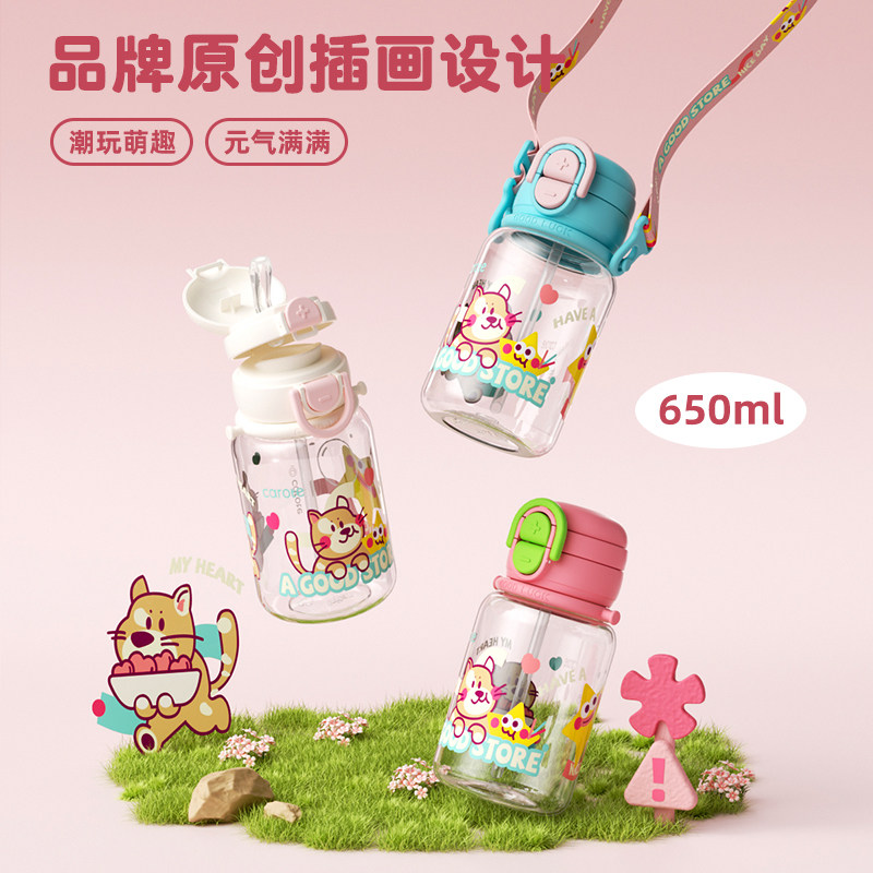 Вместительный и большой стакан со стаканом, портативная чайная чашка, пластиковый милый детский чайник